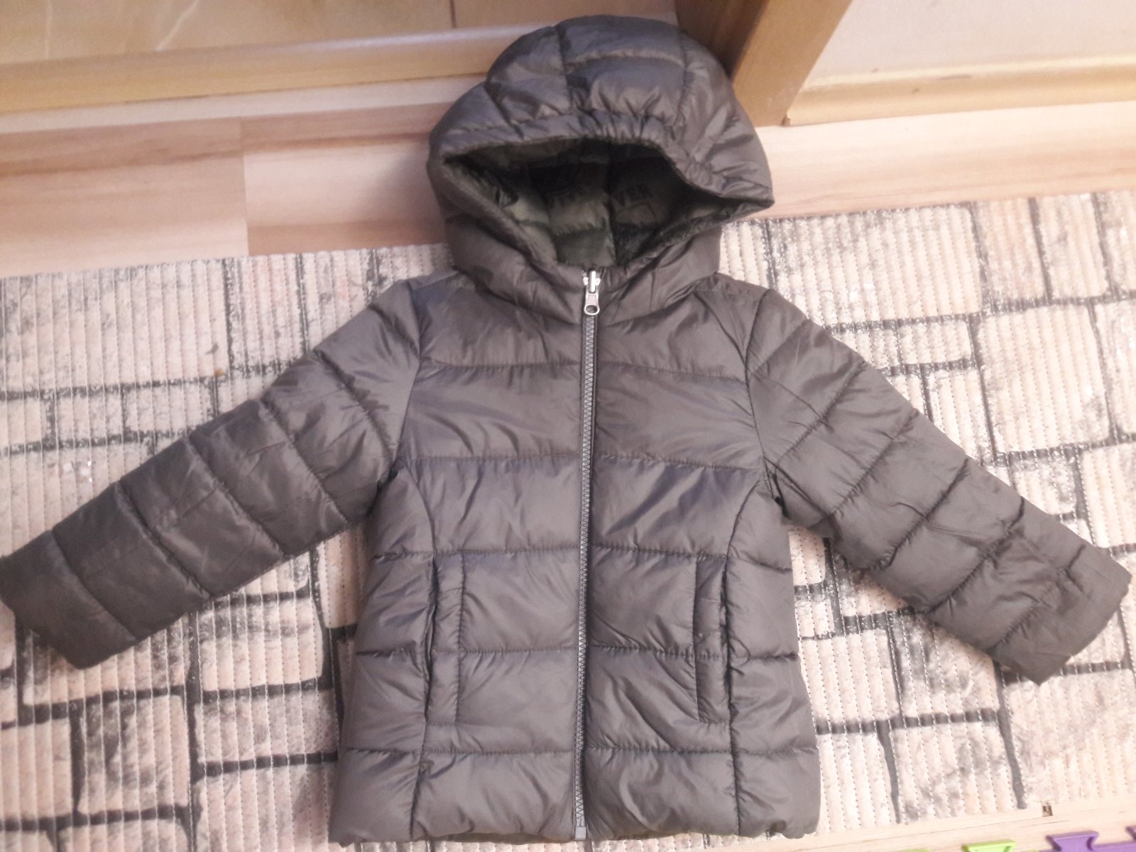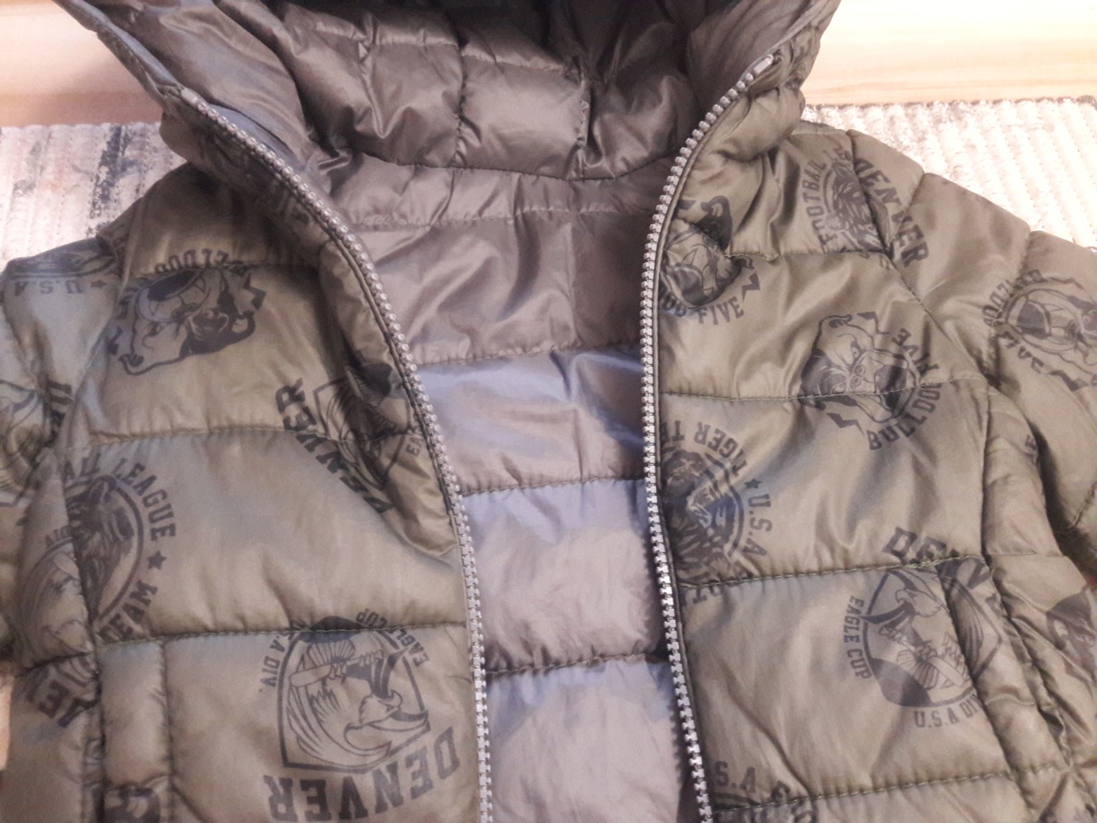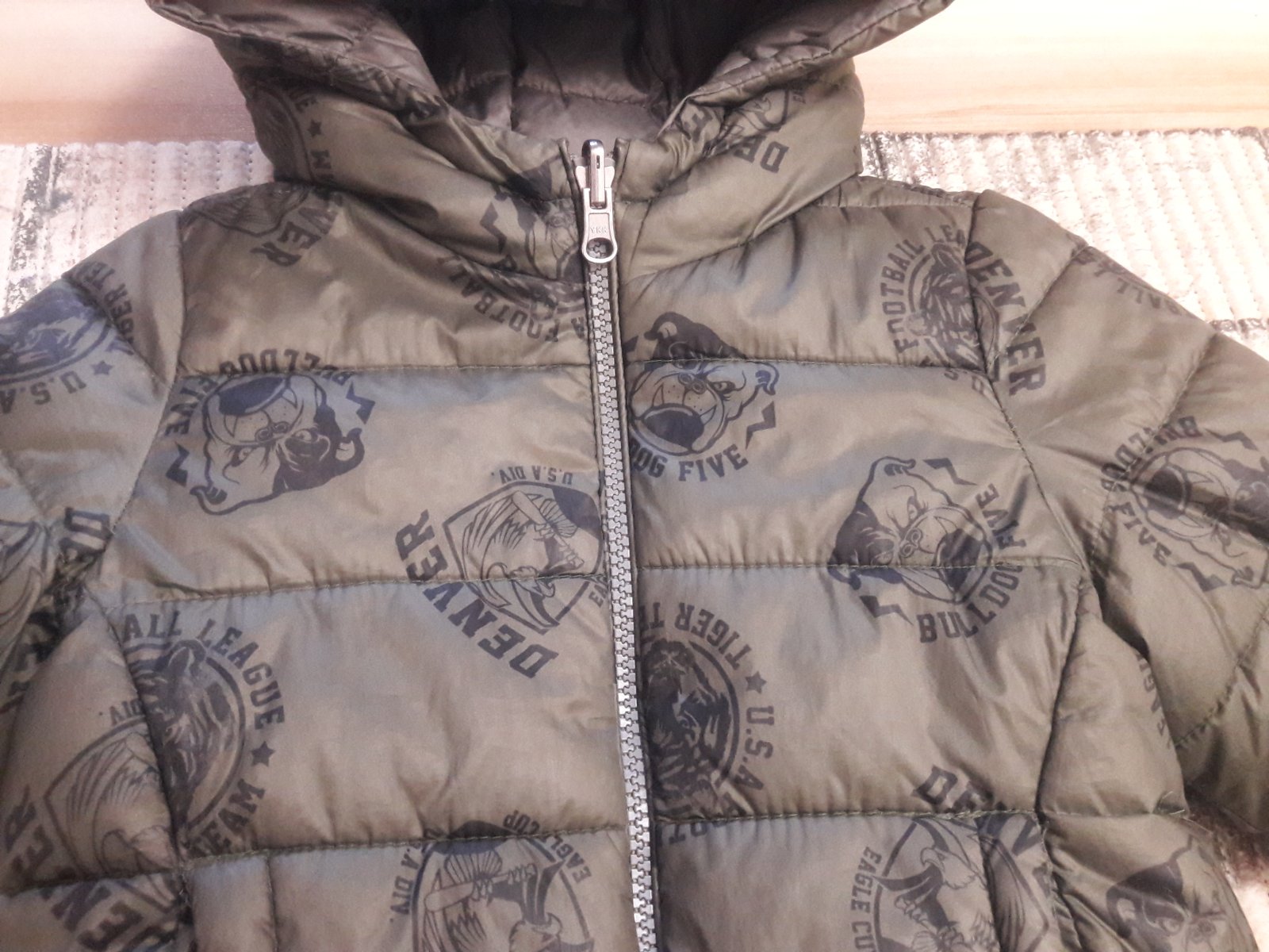 Predam krasnu chlapcensku bundu s kapucnou 2v1 :-) obojstrannu-z jednej strany je tmavozelena alebo daco ako olivova?(na foto nie je dobre vidiet presnu farbu)s frajerskou potlacou a z druhej strany tmavsia seda, znacka United Colors of Benetton,velkost 90-na 2 roky.Zapinanie na zips, z oboch stran su 2 vacky. Rozmery: od krku dolu 40,5 cm, dlzka rukava od krku 39 cm a dlzka rukava (nie od krku) 33 cm. Tusim 4x sme mali na sebe. Prosim len osobne odber v Trnave. Cena :9€.