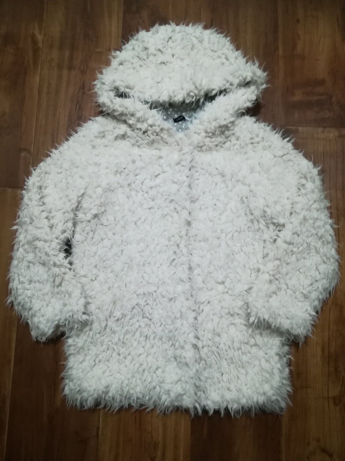 Krásna chlpatá bundička, nosili sme na jeseň do školy namiesto bundy, je mäkučká, veľmi príjemná na dotyk. Nosená v super stave. Rukáv od krku 54cm, dĺžka 58cm, šírka 43cm