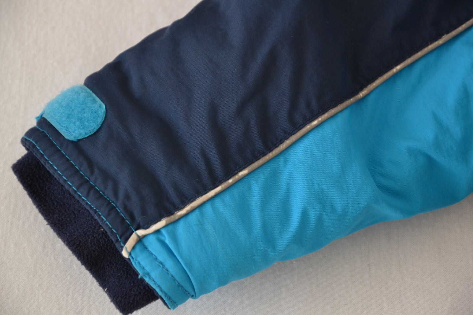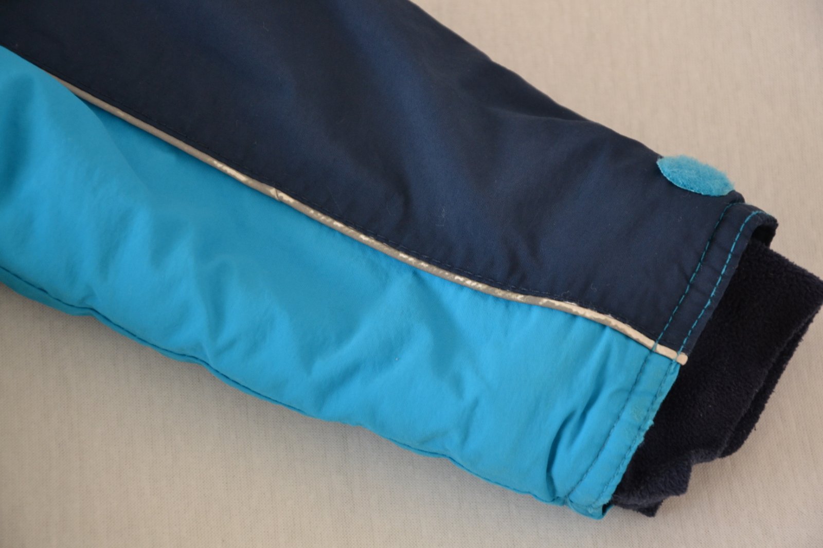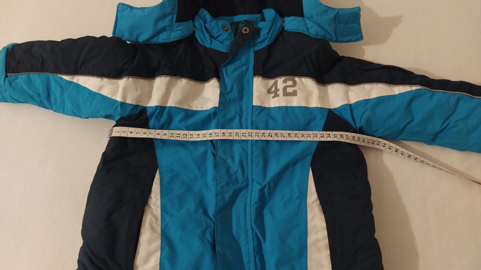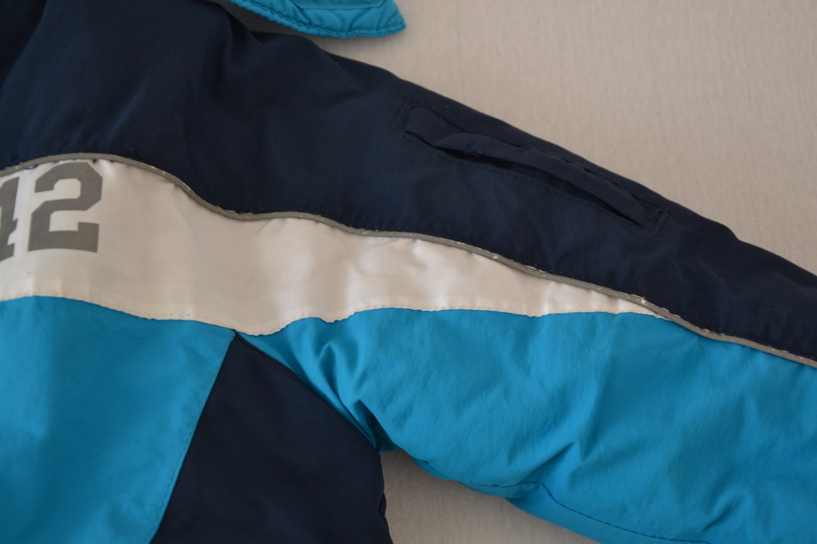 Zachovalá nosená bunda, žmolky z vnútornej strany, ošúchané reflexné pásiky na niektorých miestach - vid. fotky. Pás proti vetru a snehu, odopínateľná kapucňa na cvoky. Super na tuhú zimu.