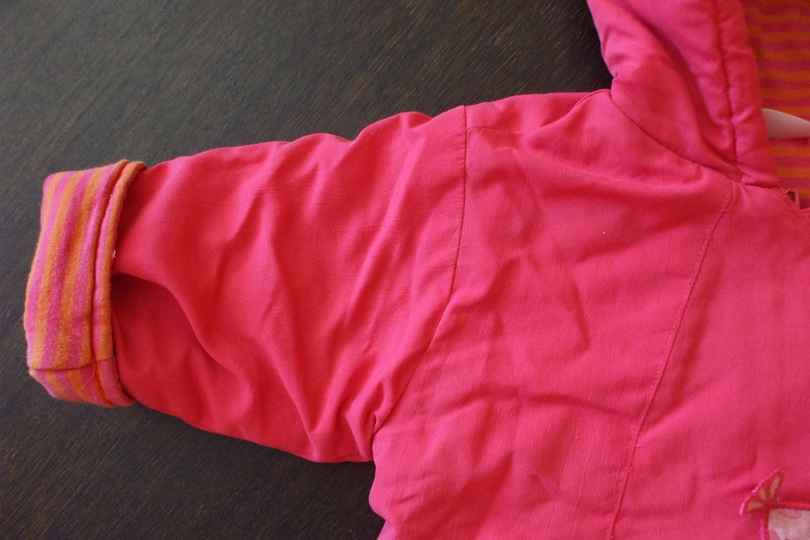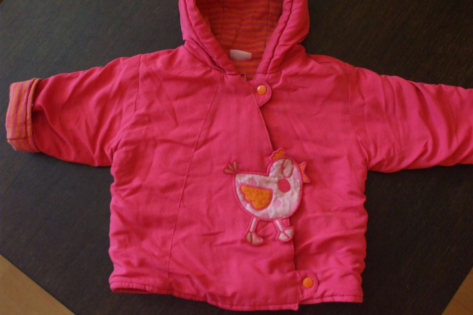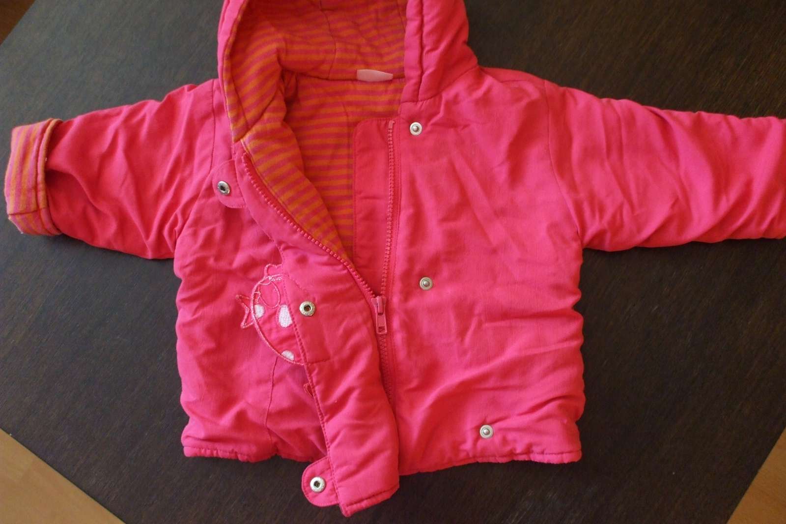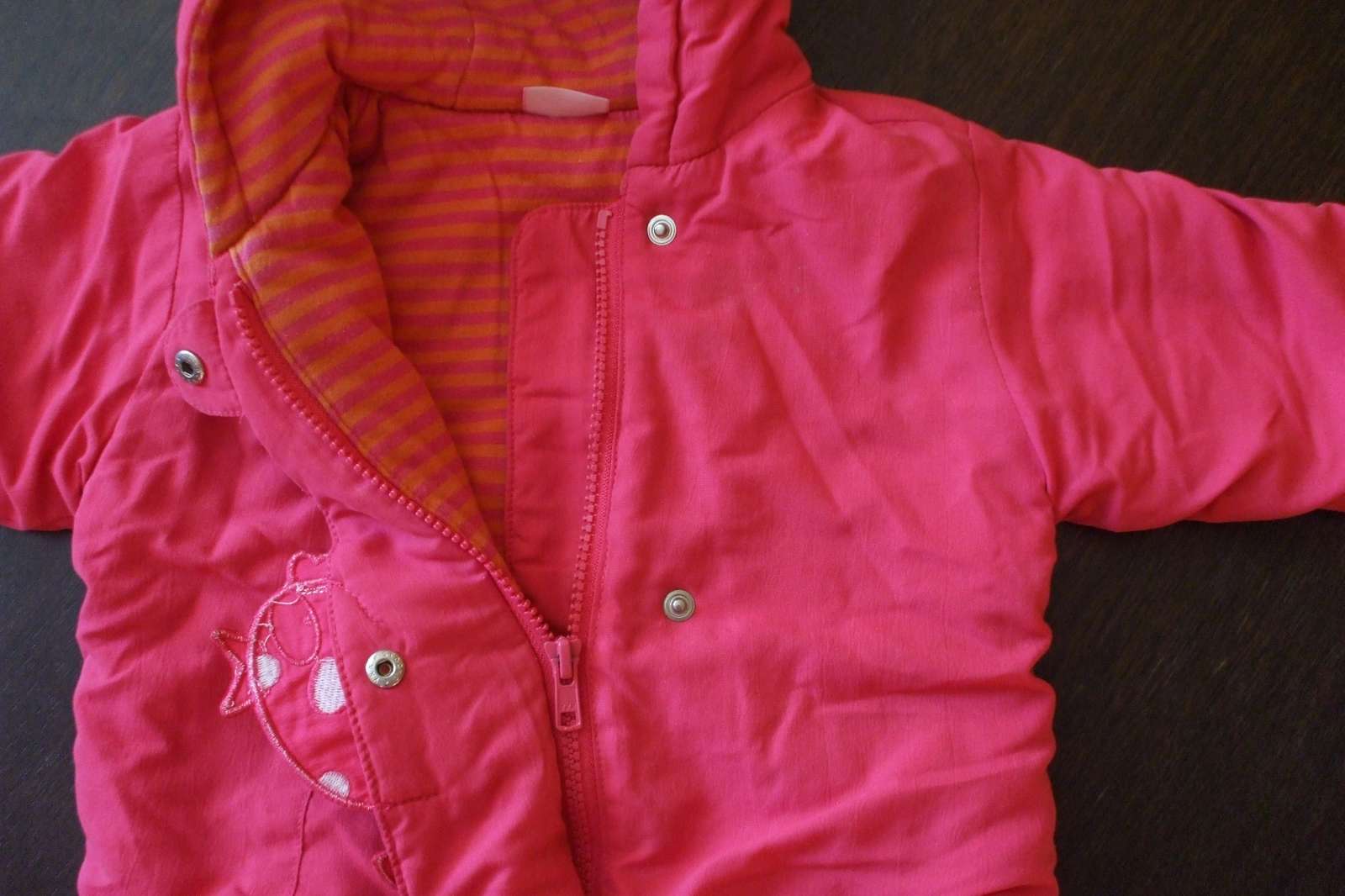 Výborná bundička, bola som s ňou maximálne spokojná. Nie je úplne hrubá, ale super strih, vydrží oveľa dlhšie, keďže môžete nosiť aj s ohnutými rukávkami aj so spustenými. Mäkká, nič dieťatko netlačí, šikmý zips pre jednoduchšie obliekanie, krytý aplikáciou a cvokmi.