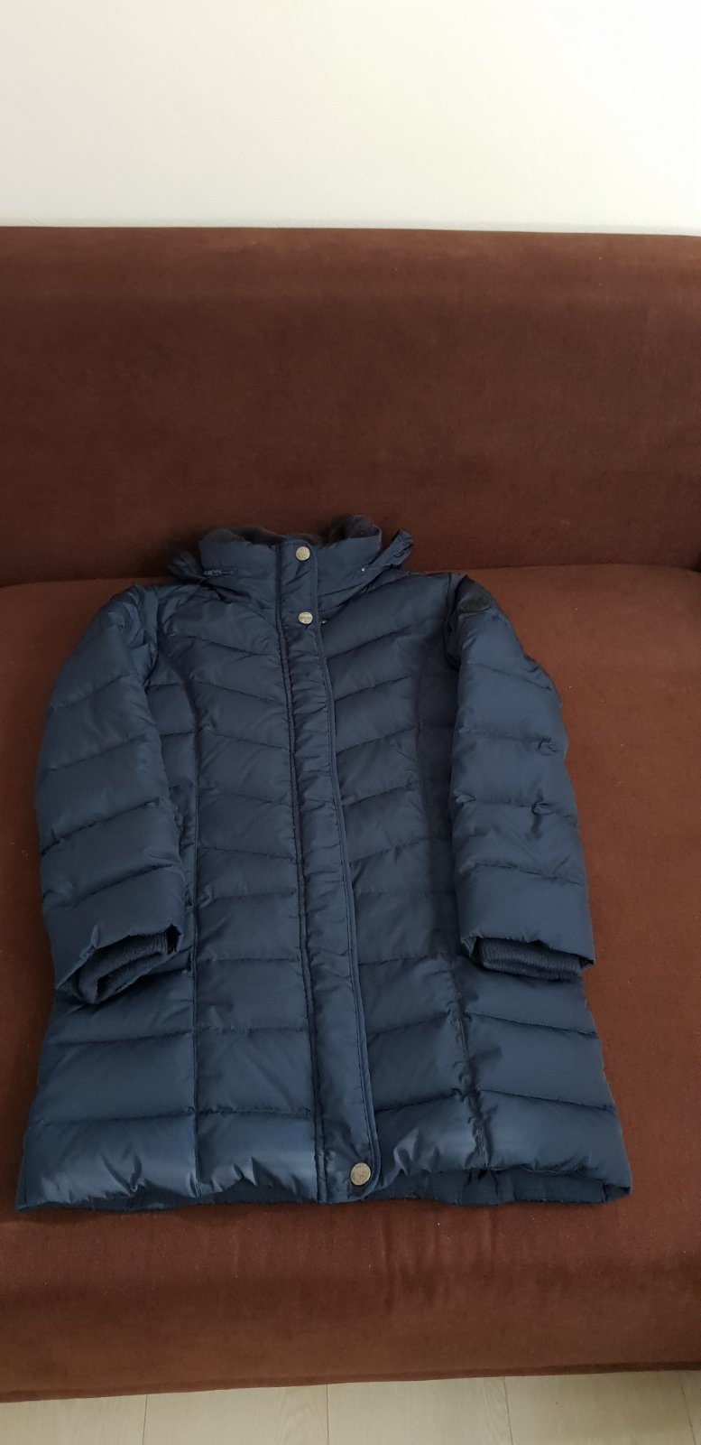 Zachovalý stav bez poškodenia Kapucňa pevná..kozusina odnímateľná .. Opasok nám chyba Rukáv 56cm Šírka 43cm Dĺžka 64cm