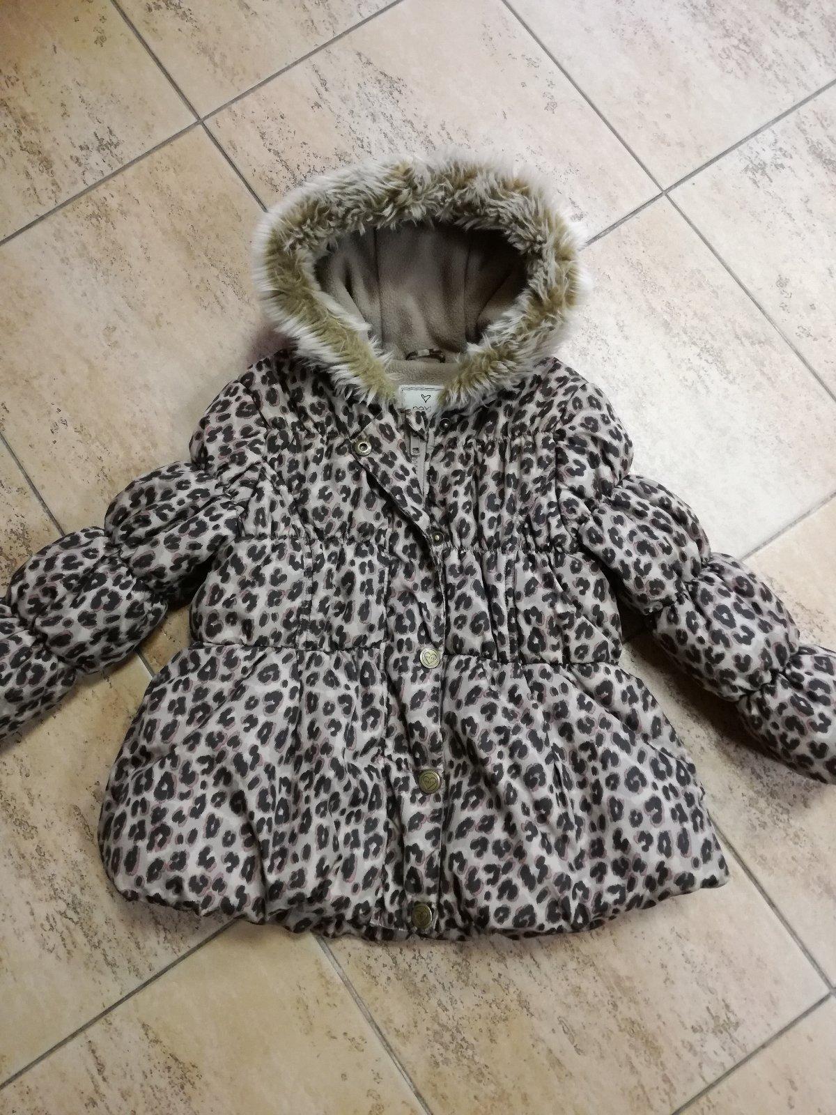 Krásna zimná bundička, výrazného tigrovaneho vzoru, kapucňa aj s kožušinou napevno. Super nosený stav bez poškodenia