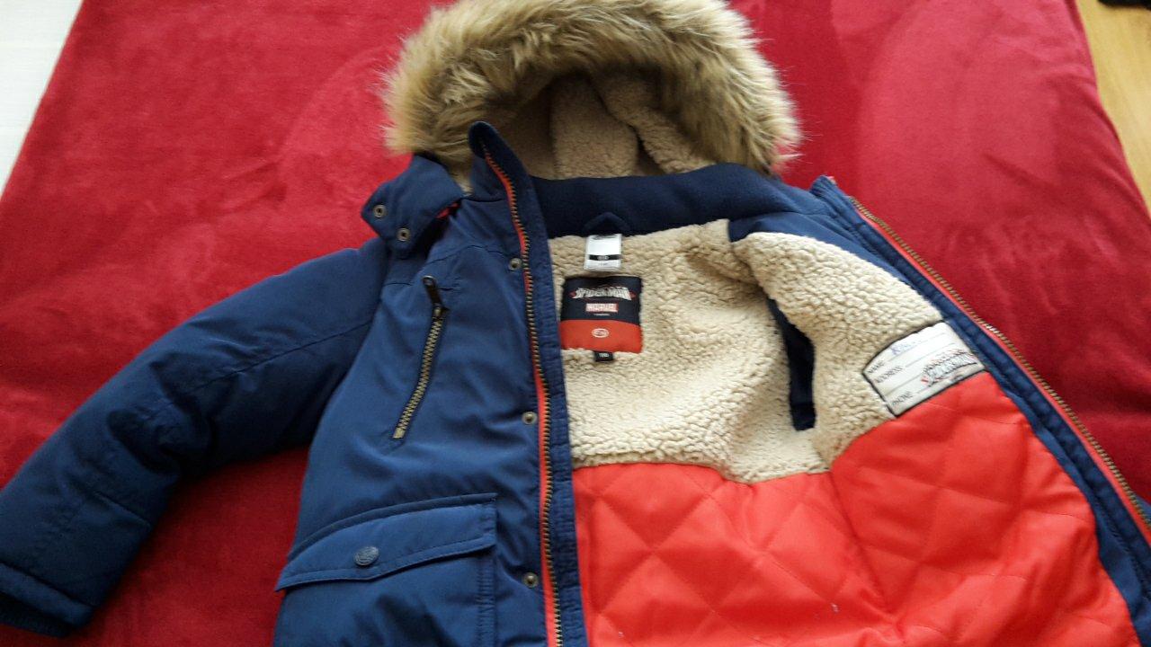 Bundicka nosena kratko minulu zimu. Bez poskodeni. Akurat na vnutornej podsivke, cervenej, sem tam zmolky. Vyteplena. Farba keajsia ako na foto, leskla modra. Odporucam. PC. Cez 30 €