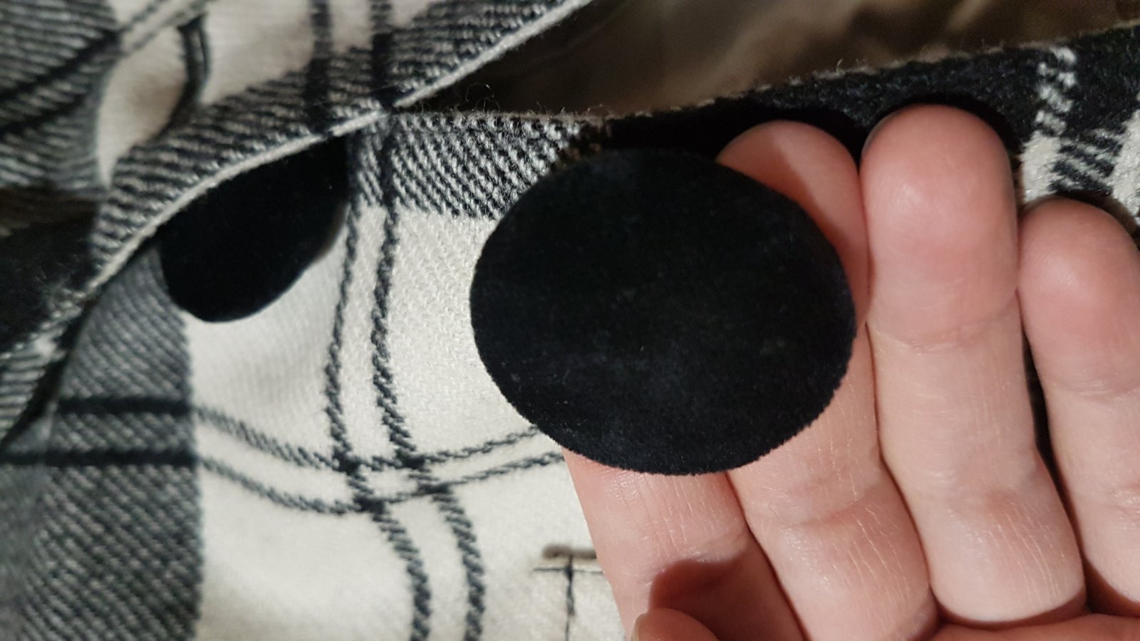 Zamatove gombiky, jemne vypchavky na pleciach.