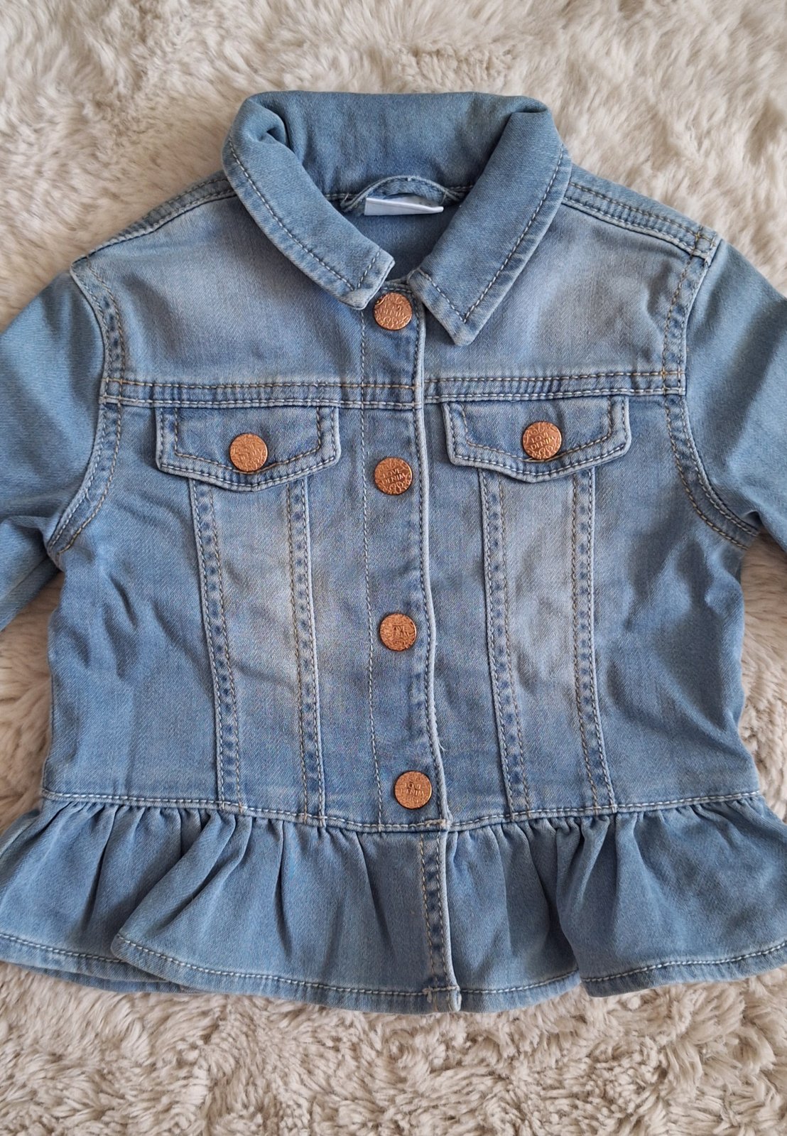 Krásna riflova bunda oblečená 1x. V TOP stave ako NOVA. Velkost 12-18 mesiacov.