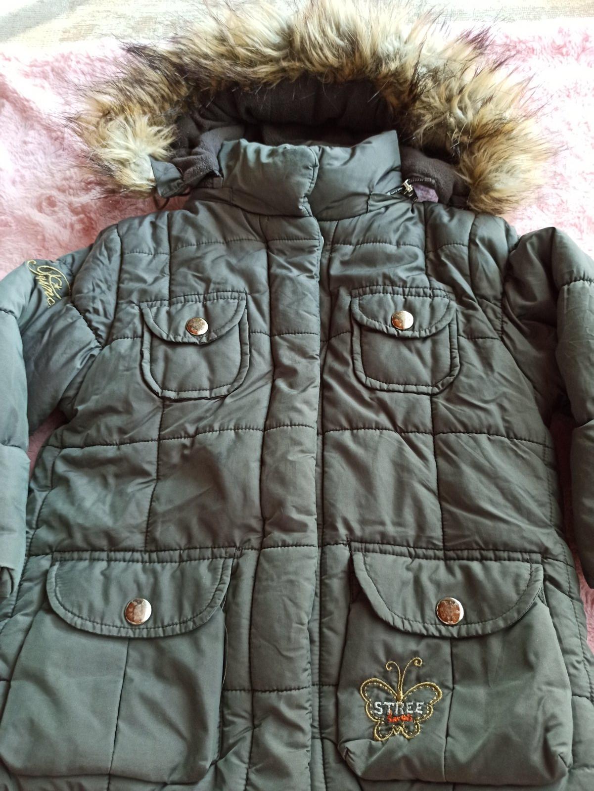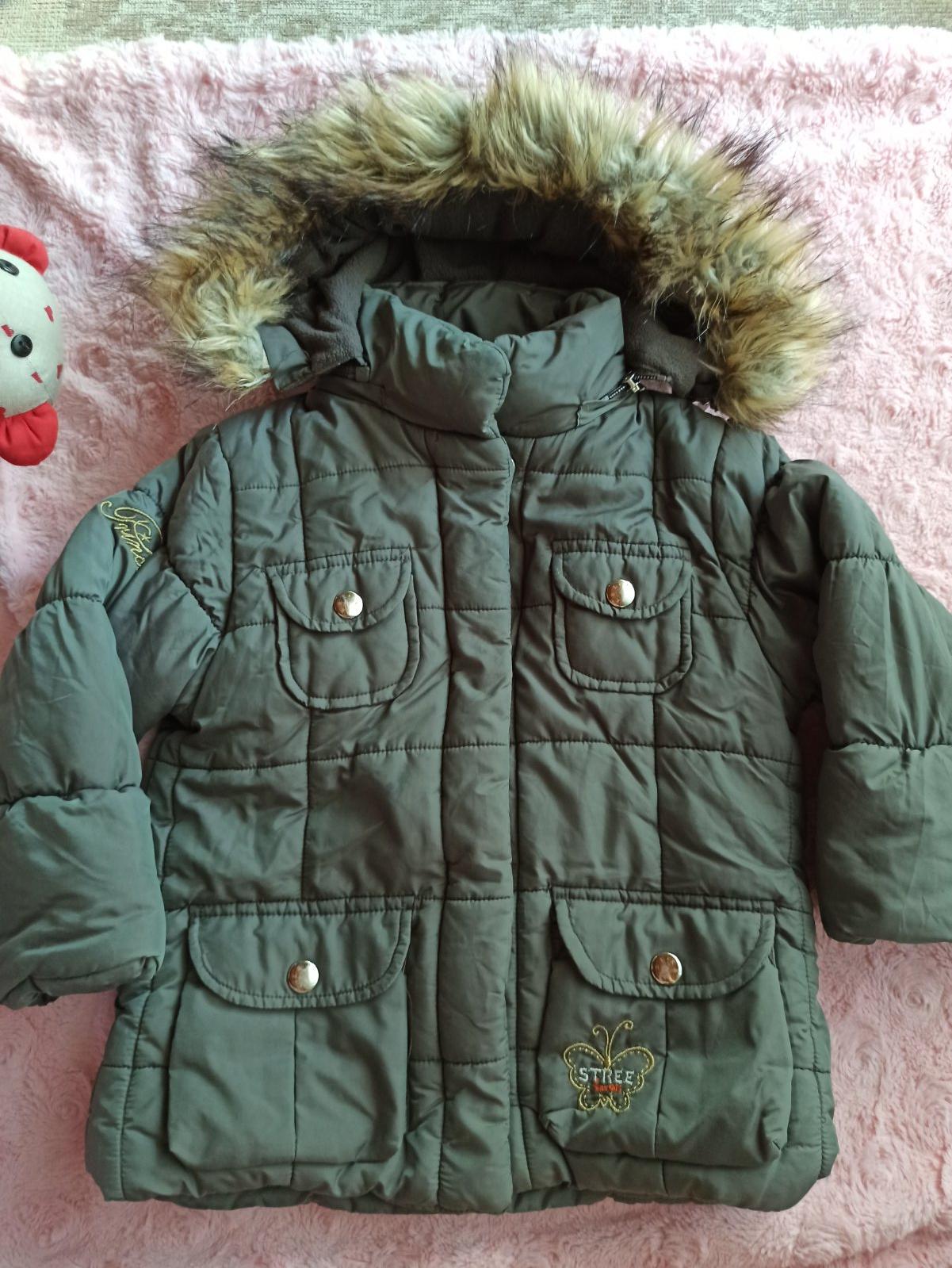 Poriadne teplá, zateplená. Odopinateľná kapucňa, dokonca aj kožušinka na kapucni sa dá odopnúť. Vo veľmi dobrom stave, bez poškodenia. Rozmery na fotkách.
