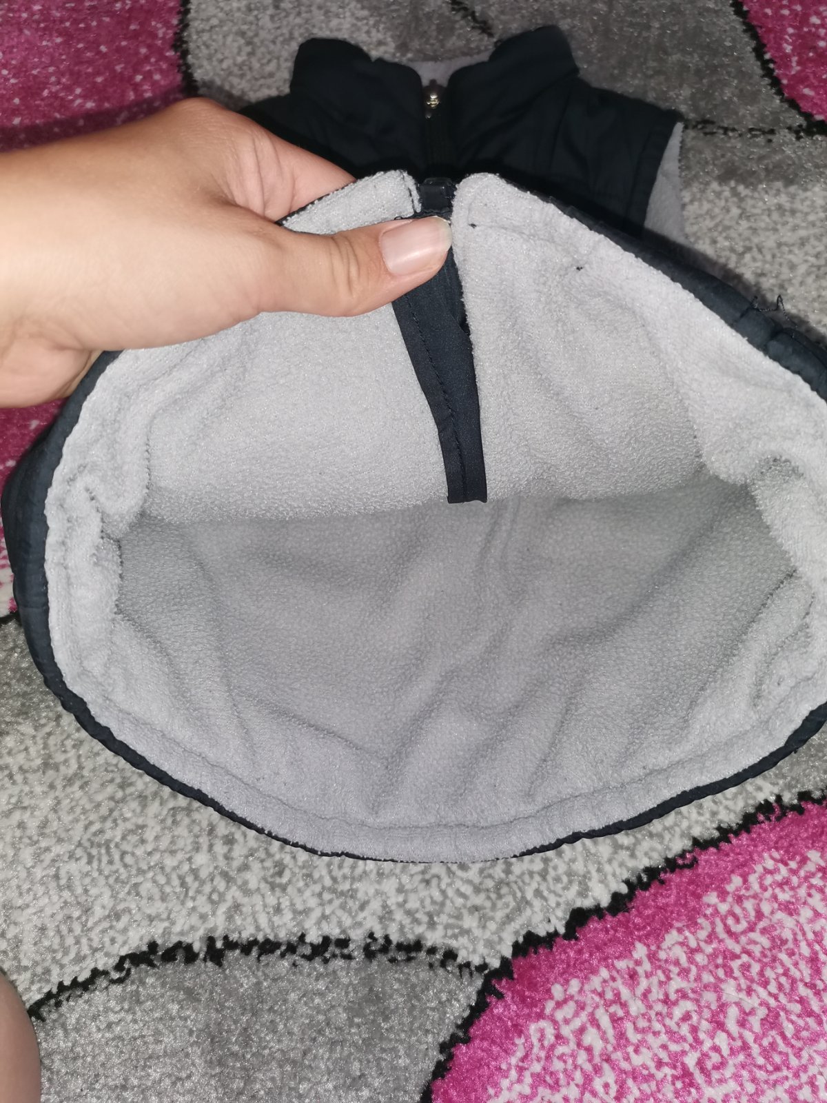 Vesta tenšia, podšitá na prechodné obdobie, bez poškodenia, veľkosť 12-18mesiacov. Na bežci chýba kúsok, ale dá sa nahradiť, my sme tam mali prívesok.
