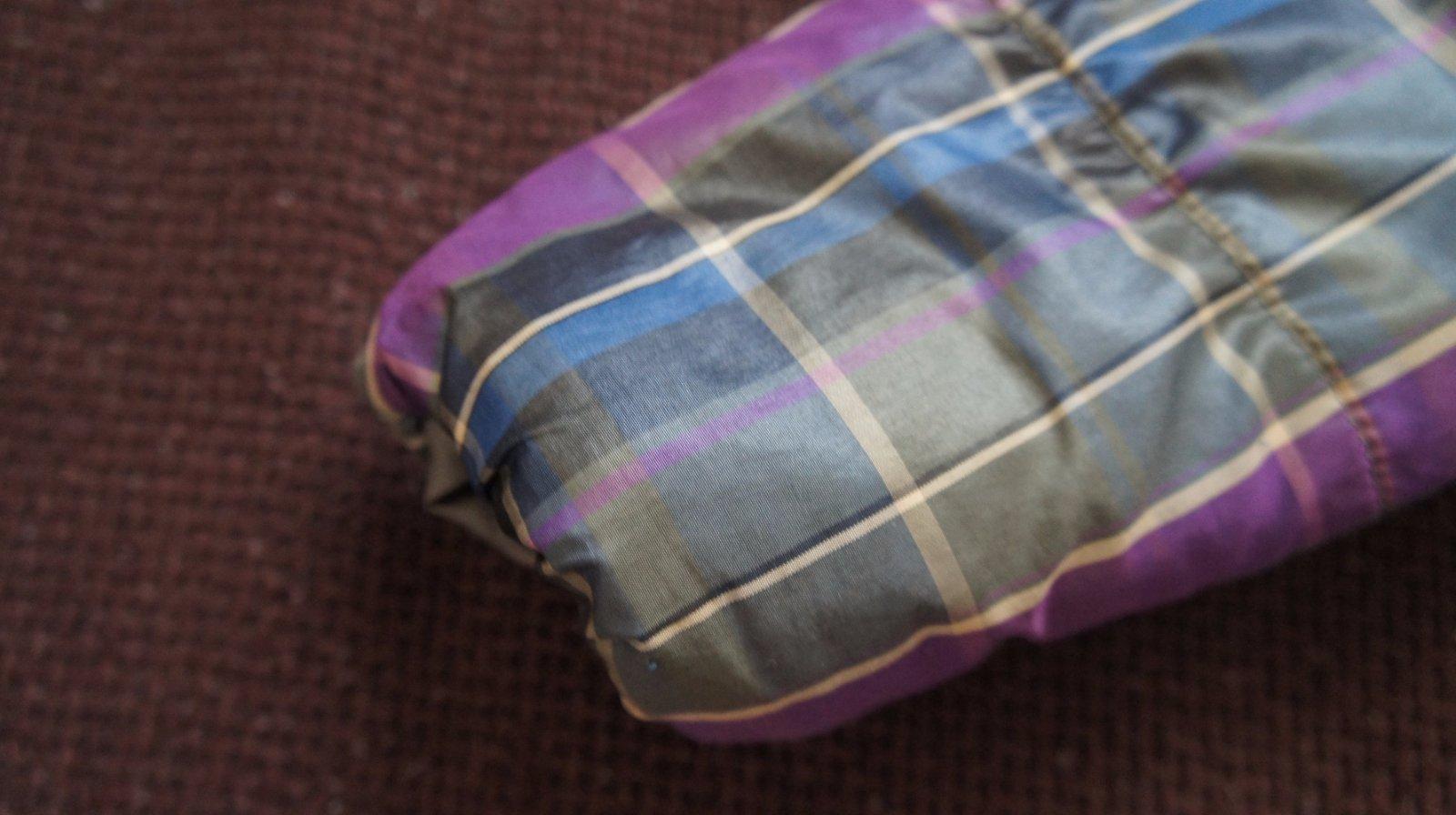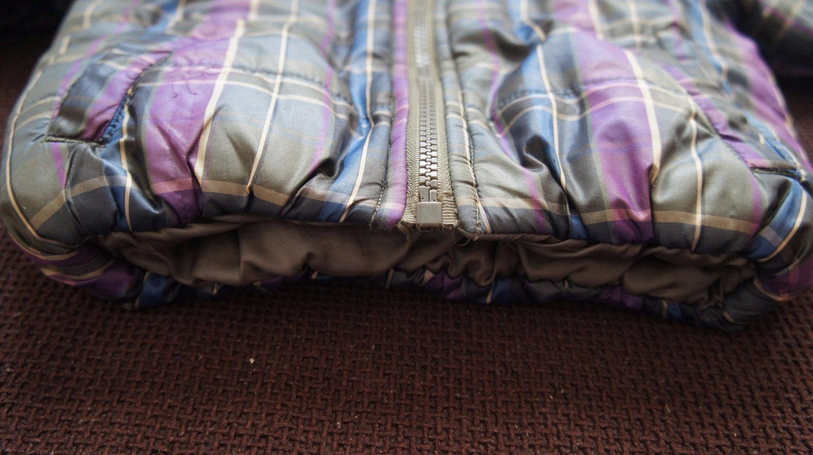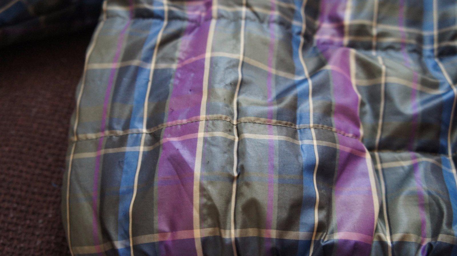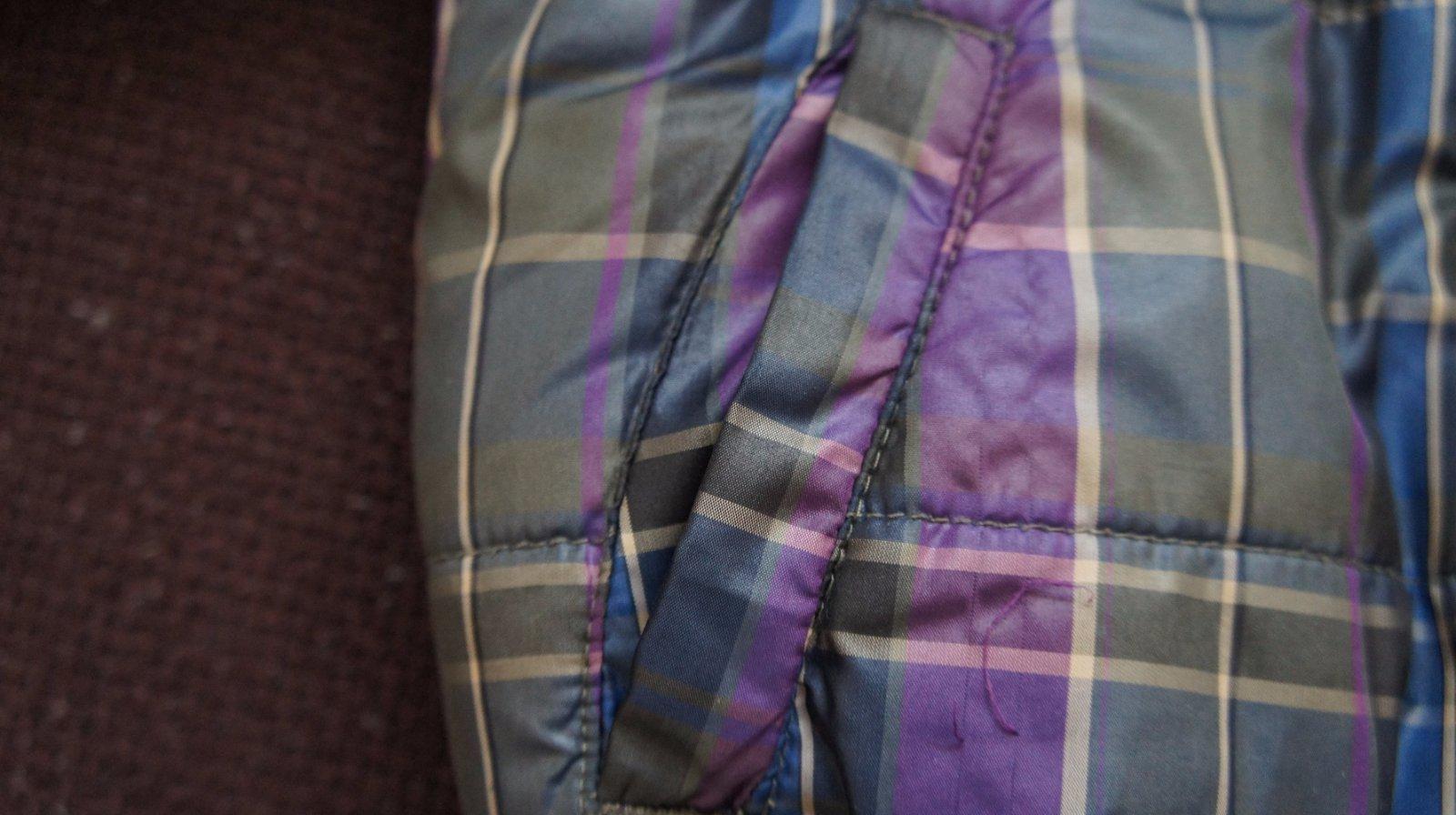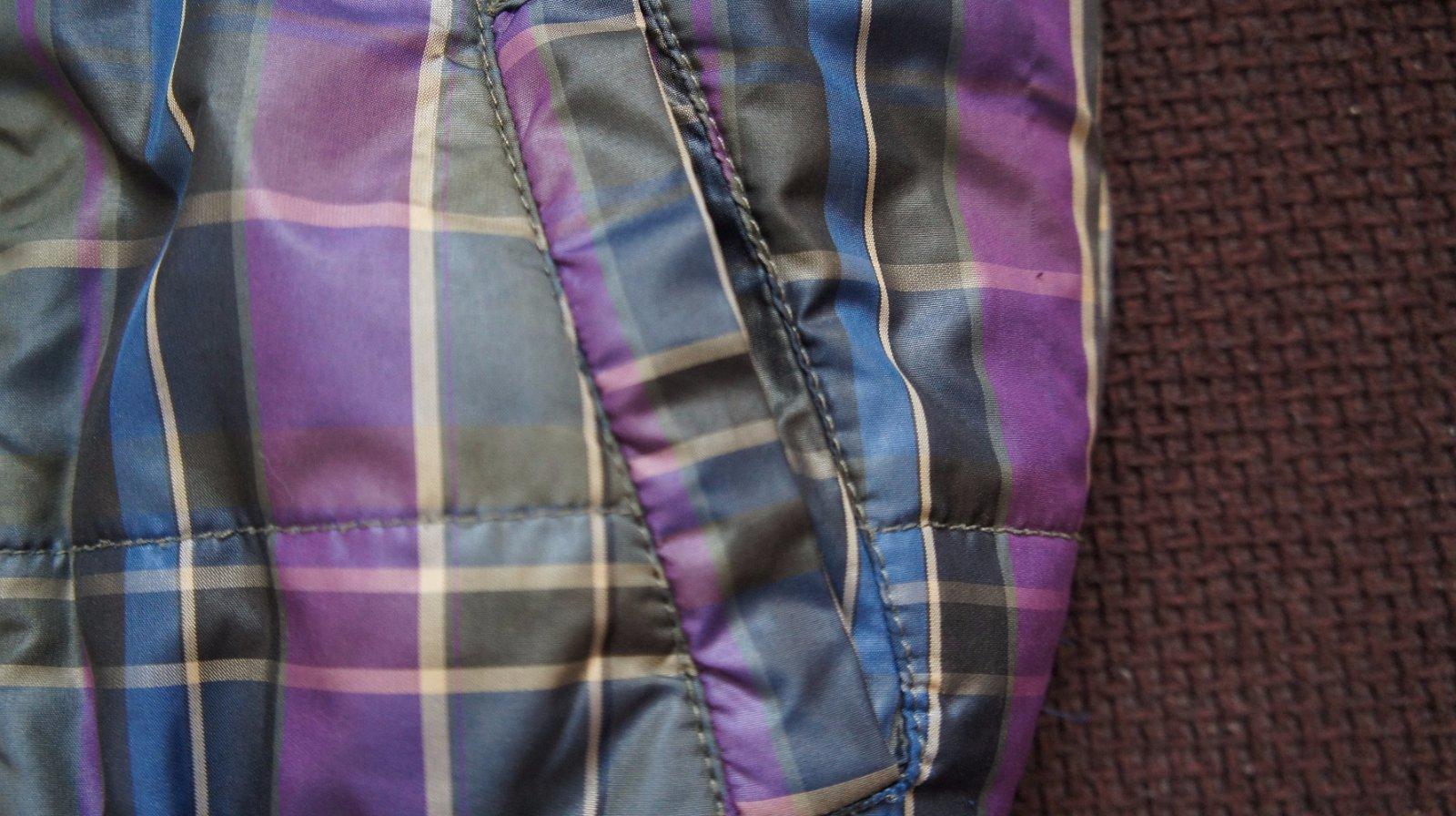 Z tej károvanej strany, z ktorej sme ju nosili má také 2 zatiahnutia - prvé vpravo vpredu pri vrecku a druhé vzadu dole vľavo. Ale ak by ste ju nosili z tej tmavozelenej strany tam je bez poškodení.
