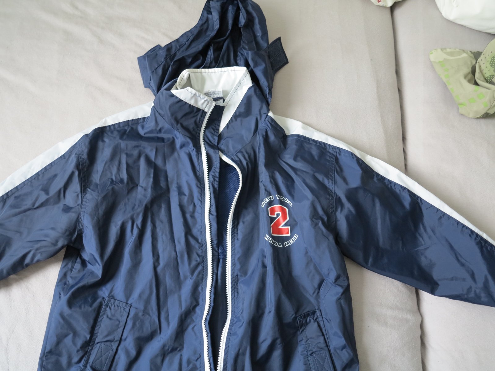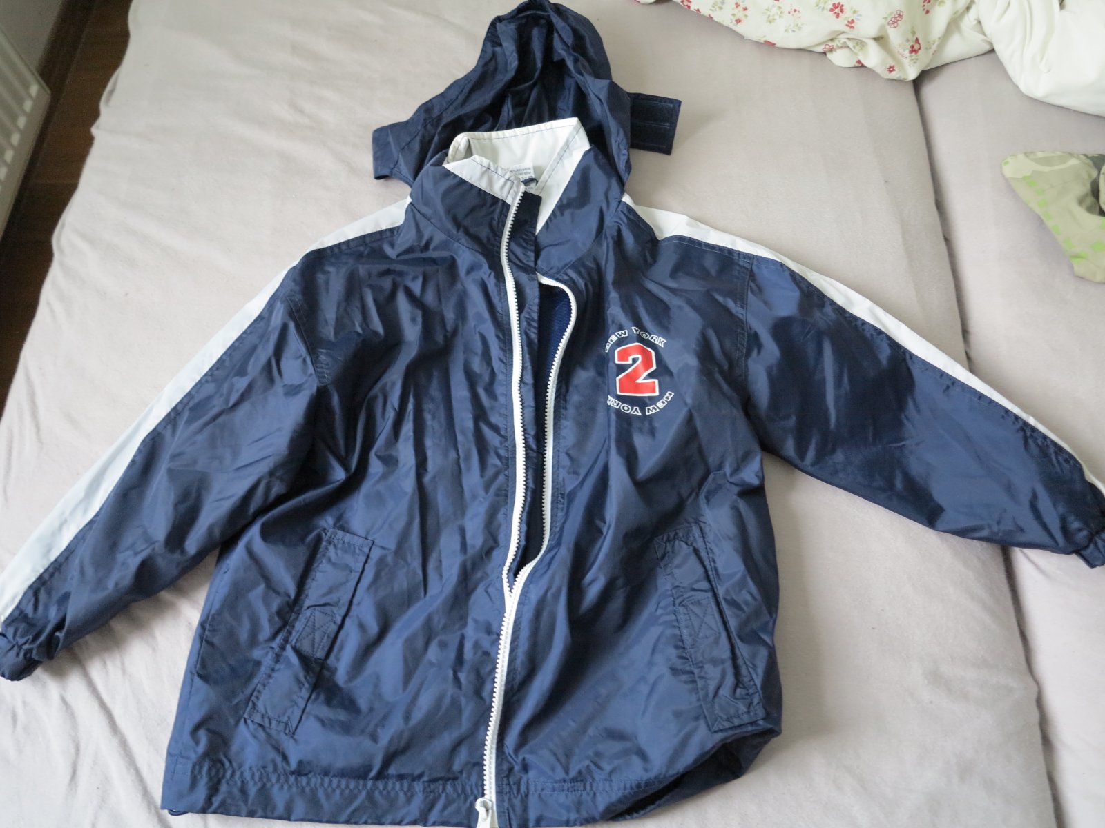 Predam asi 2 -3 x oblecenu, tenku bundicku, rocopiano, tmovomodrej farby, dole mozne zuzenie gumickou a aby nefukalo, zipsy a vacky plne funkcne, kapucka sa da vlozit do golierika. Dlzka 56 cm, sirka pod pazuchami 48 cm, rukav hore 50 cm, dole 30 cm. Cena 3,9 plus posta.
