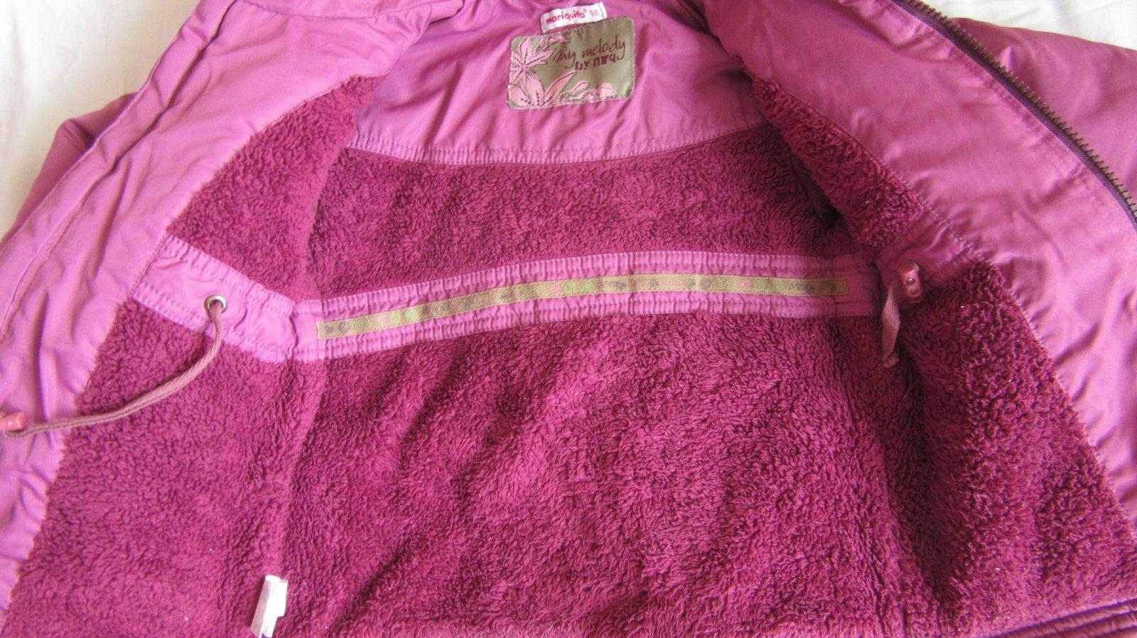 Kapucňa aj kožušinka na kapucni sa dajú odopnúť. Vnútro bundičky je zateplené ešte aj mäkučkým flísom. Bundička sa dá stiahnuť vo vnútri v páse. Bundička nemá žiadne poškodenia.