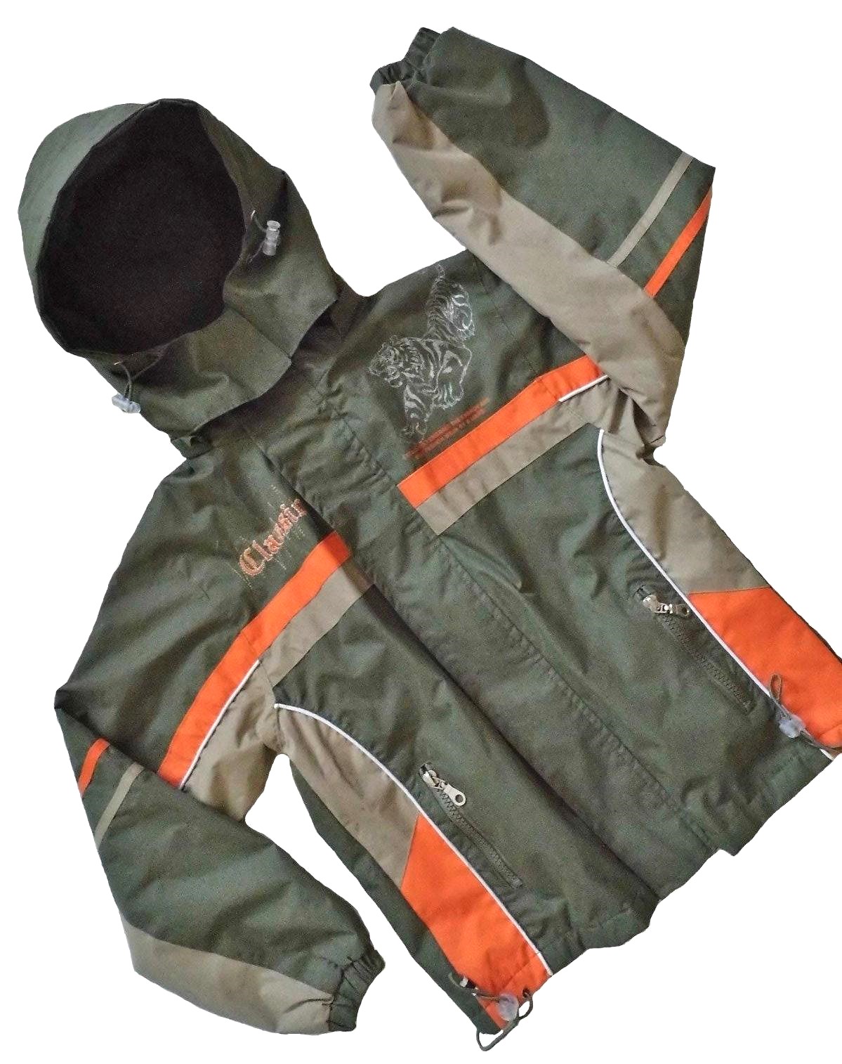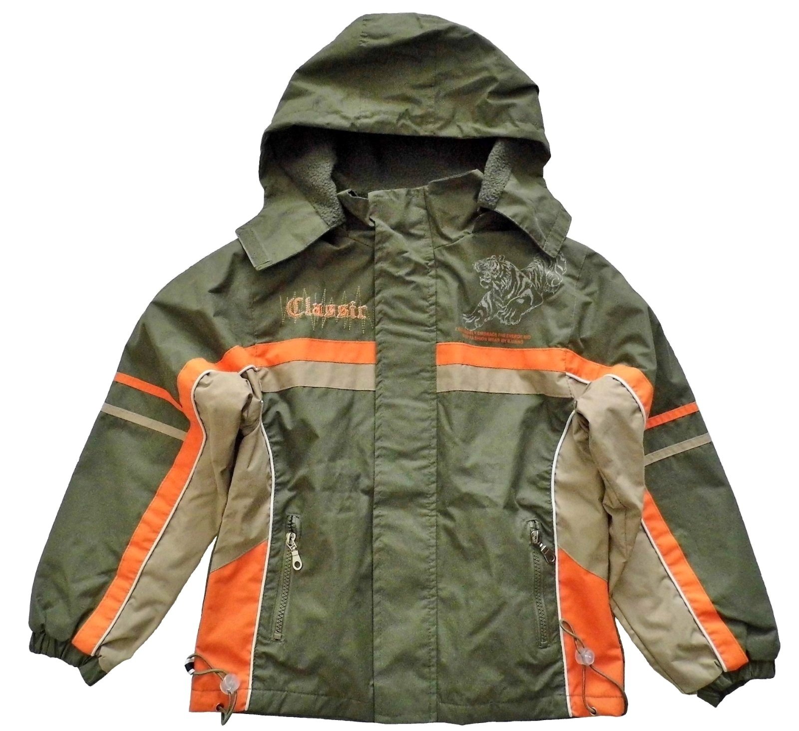 predám chlapčenskú vetrovku vhodnú na jarné/jesenné obdobie, dobrý nosený stav, píšu veľkosť 140, materiál: 65% bavlna, 35% polyester, farba-kombinácia kaki/béžová/oranžová, podšívka z tenkého flísu vo farbe kaki,