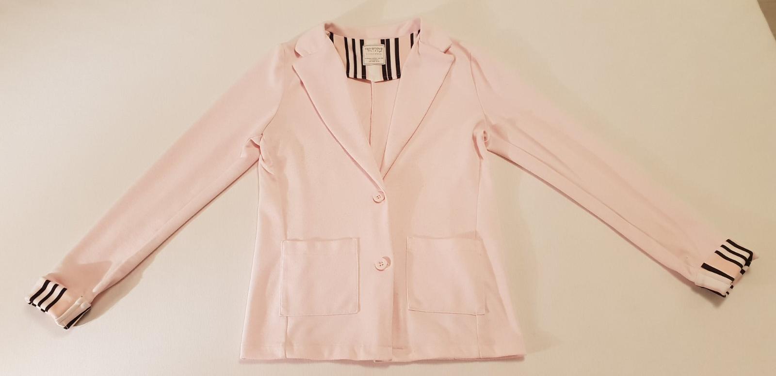 Oversize kabátik luxusnej dizajnérskej značky Andorine č. 152, 12 rokov, v super stave, dcérka mala pár krát, sedi od 146/152-158+. Kabátik sa zapína hore na 2 patentky po prsia, nižšie je bez zapí...