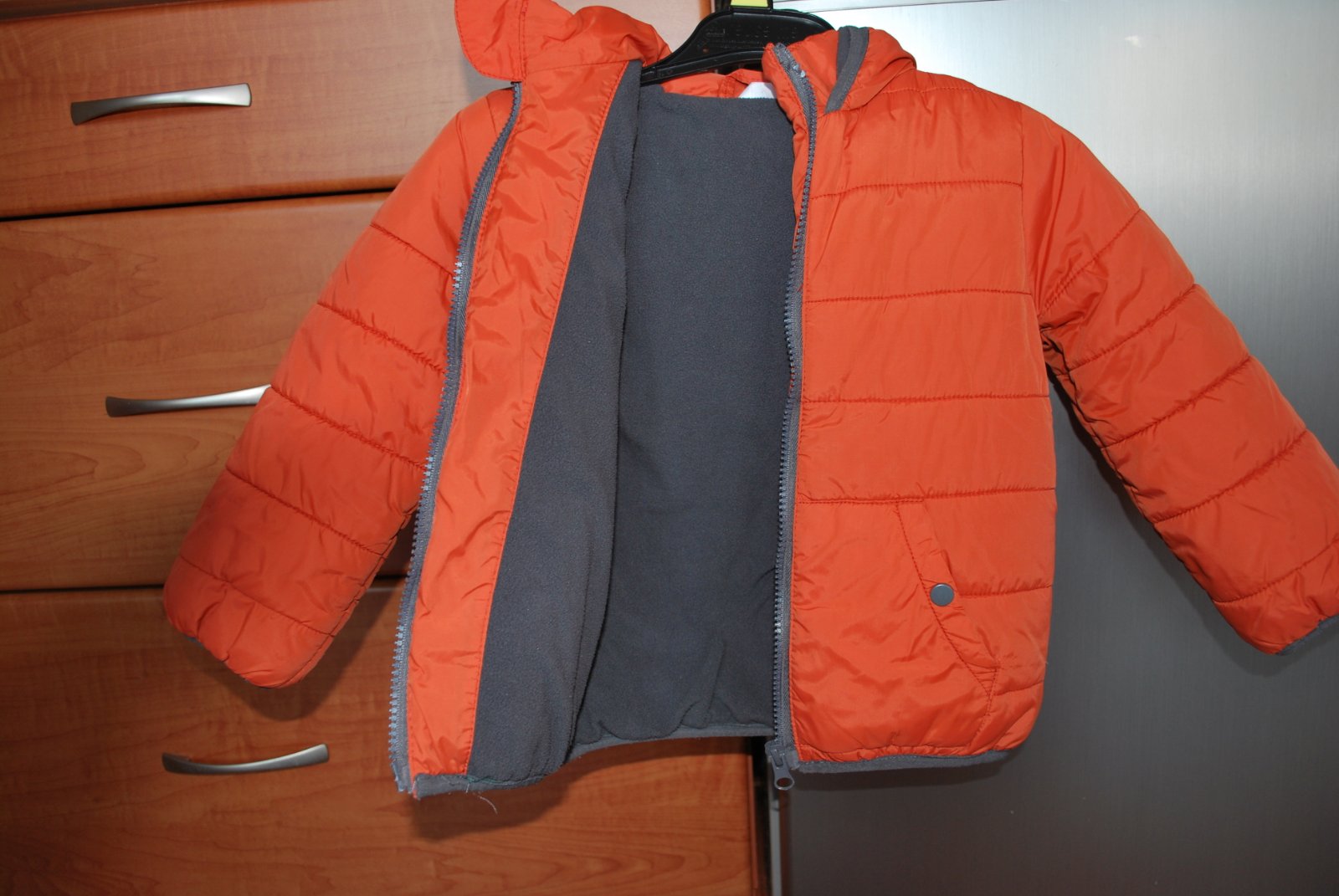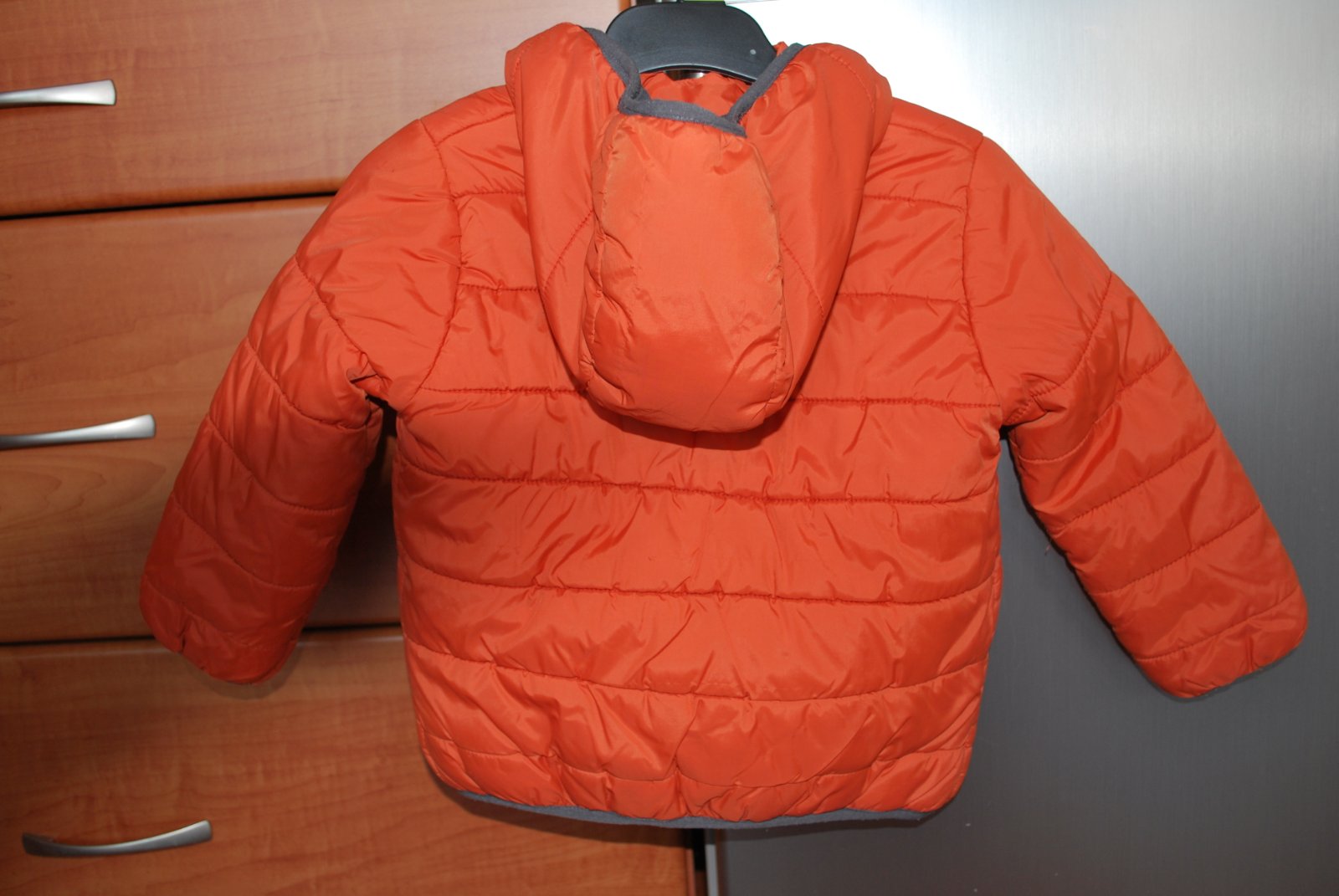 Velmi pekná bundička velkosť 98cm. Farba je tmava oranžová tehlová.