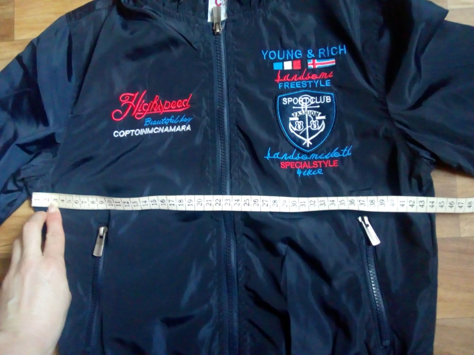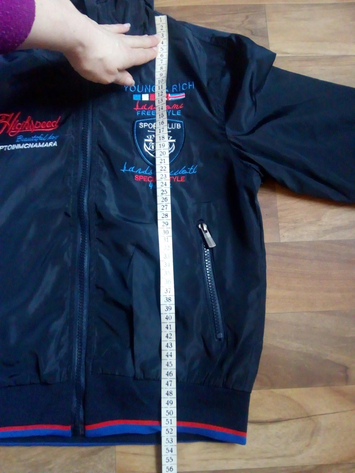 Predám bundu po synčekovi. Je to veľkosť 122/128. Rozmery na foto . Bunda je podsita sieťkou. Je bez poškodení. Cena 5 eur plus poštovné .