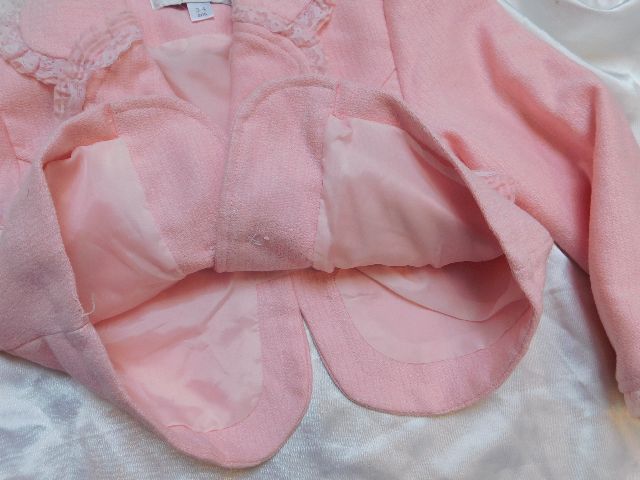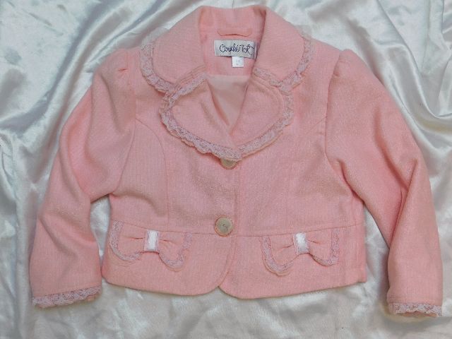Luxusny velmi pekny tenky kabatik/blejzer,ruzovej farby,s podsivkou,lemovany čipkou,zapinanie na gombiky.35%cotton,65%polyester.ako novy.PC nad 50€