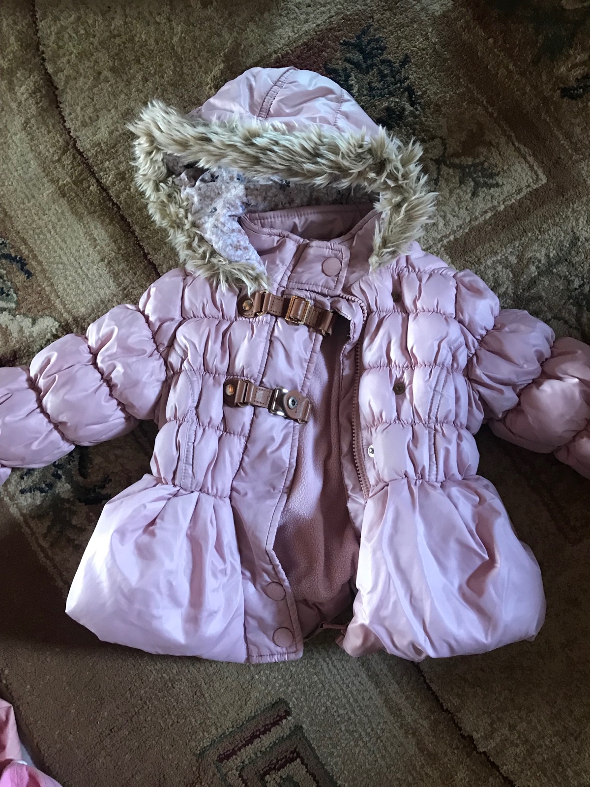 NEXT krasna zimna bundička s kapucnou, je uplne teplučka, vo velkosti 92 , dobrý nosený stav, len ošuchaná zlata farba na prackach nič strašne, inak je všetko uplne OK Dlžka je 39cm, dlžka rukáva o...