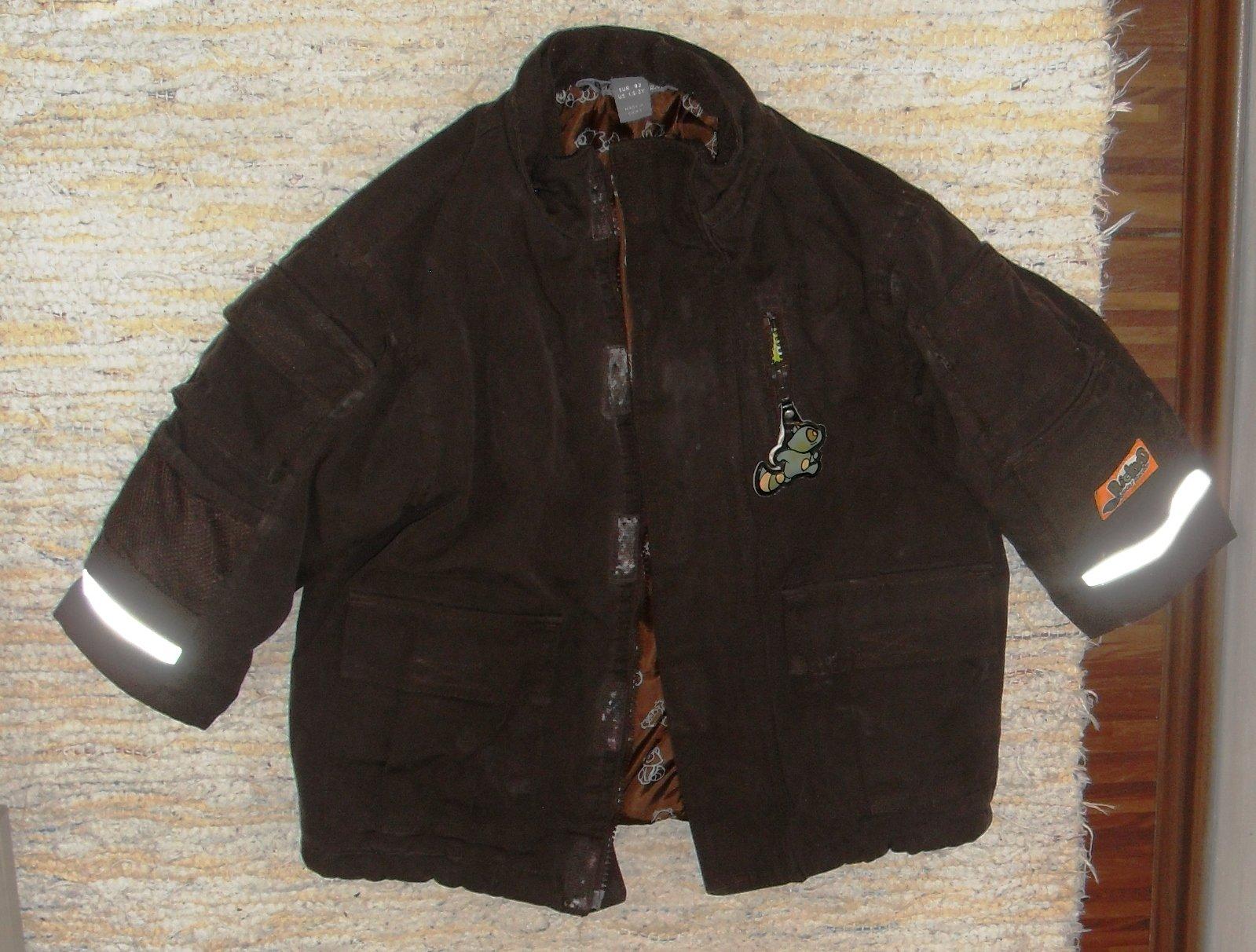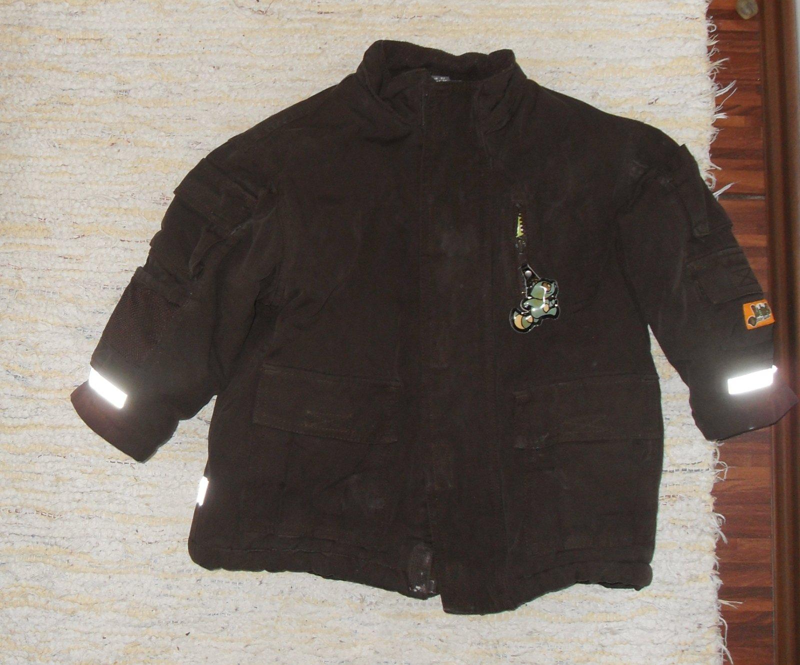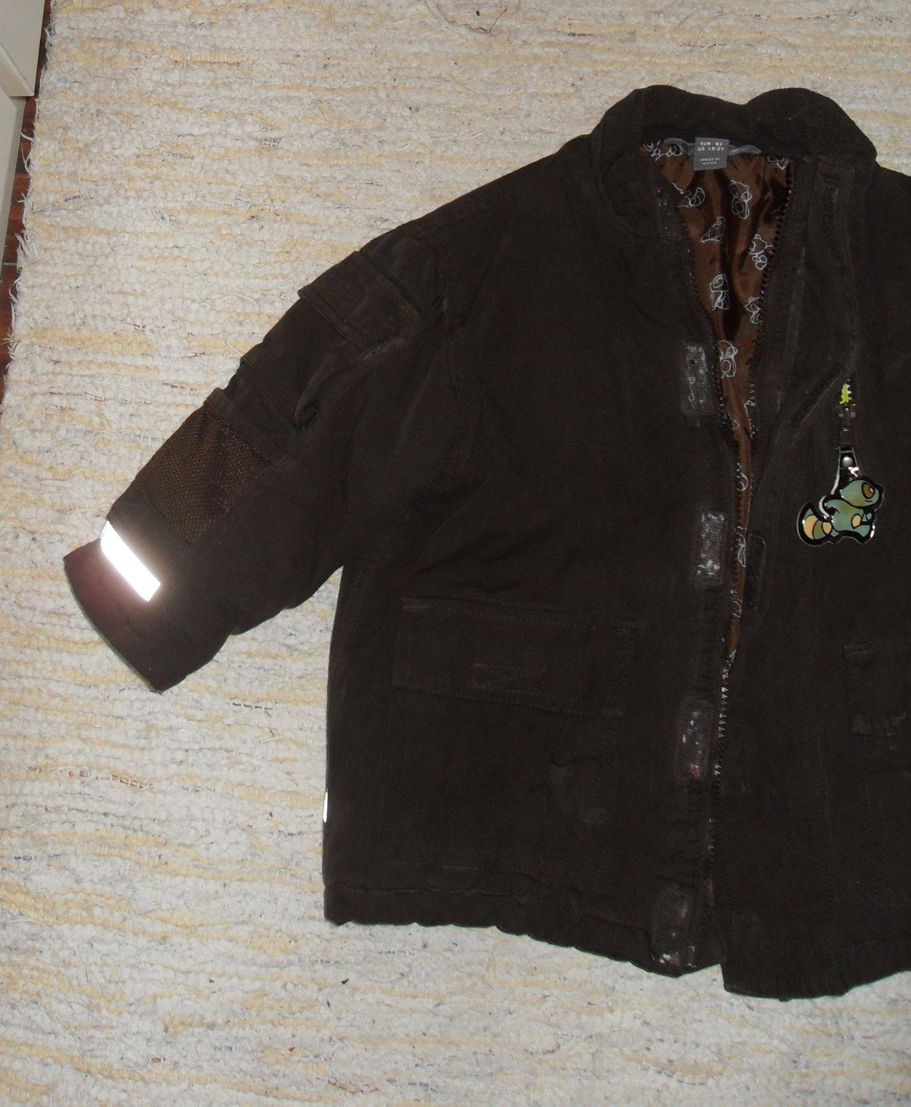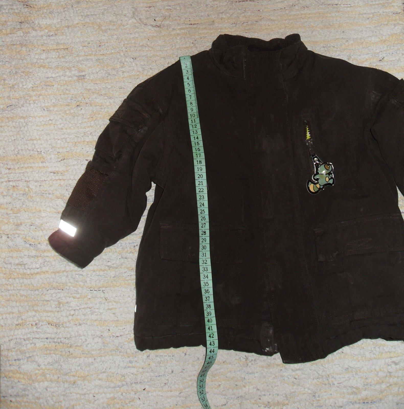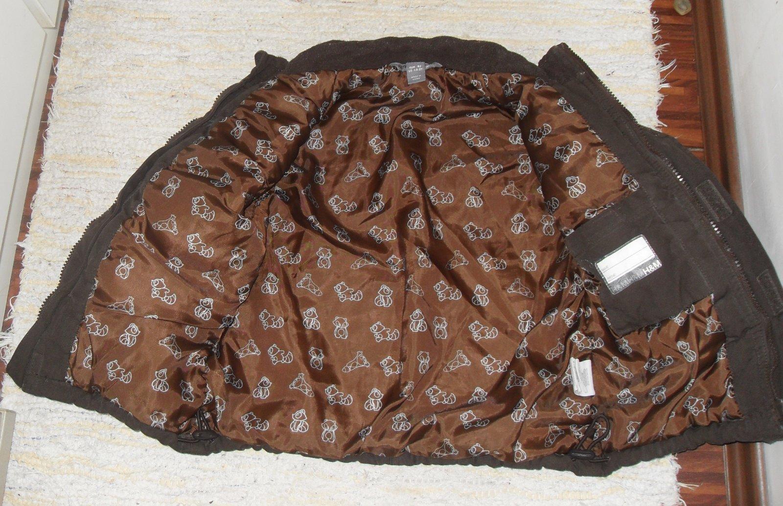 Dobrý nosený stav, bez poškodení, akurát kapucku už nemáme :( preto aj tá cena. Farba tmavo-hnedá až do čierna skoro. Je dosť teplá, n takú veľmi chaldnú jeseň,jar.Dlžka cca 43cm. Má veľa vreciek. Fľakatá nie je, foťák to zle odfotil :-(