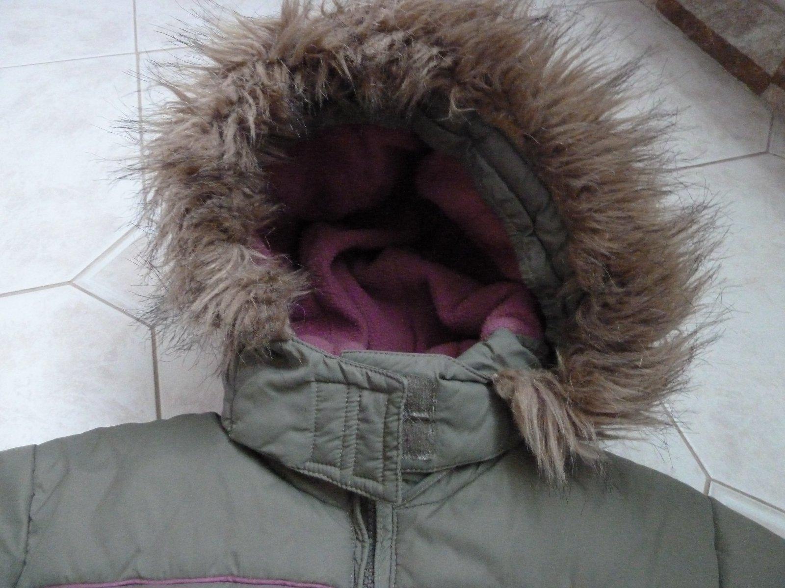 Dievčenská bunda v super stave s odnímateľnou kapucňou, vnútorné vercko na mobil, na rukáve maličké vrecúško so zipsom