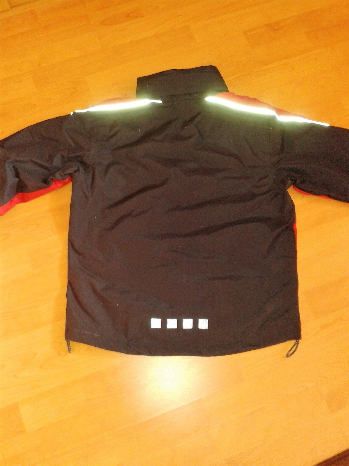 Nesadla veľkosť. Pevný polyamidový materiál, podšitá sieťovinou, odnímateľná teplá flísová mikina, kapucňa vo vysokom golieri, dolu sa dá stiahnuť, na rukávoch guma aj suchý zips, reflexné prvky. Veľmi praktická, keďže sa dá nosiť aj ako prechodná aj zimná.