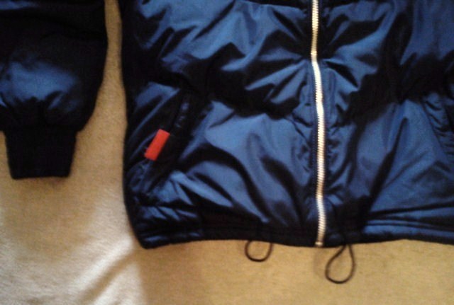 Krasna tmavomodra presivana bundicka so syto cervenou kombinaciou vratane futra,uzasna kapucka lemovana kozusinkou (kozusinka sa da odopnut ) s moznostou stahovania na snurku,na lavej strane vysite logo znacky,bocne vrecka so zapinanim na cvok,vnutro v spodnej casti so skrytym patentom aby neprefukala,moznost regulovatelneho stiahnutia na gumku v spodnej casti bundicky,rukaviky na siroku presivanu gumku,kovove logo adidas na zipse.