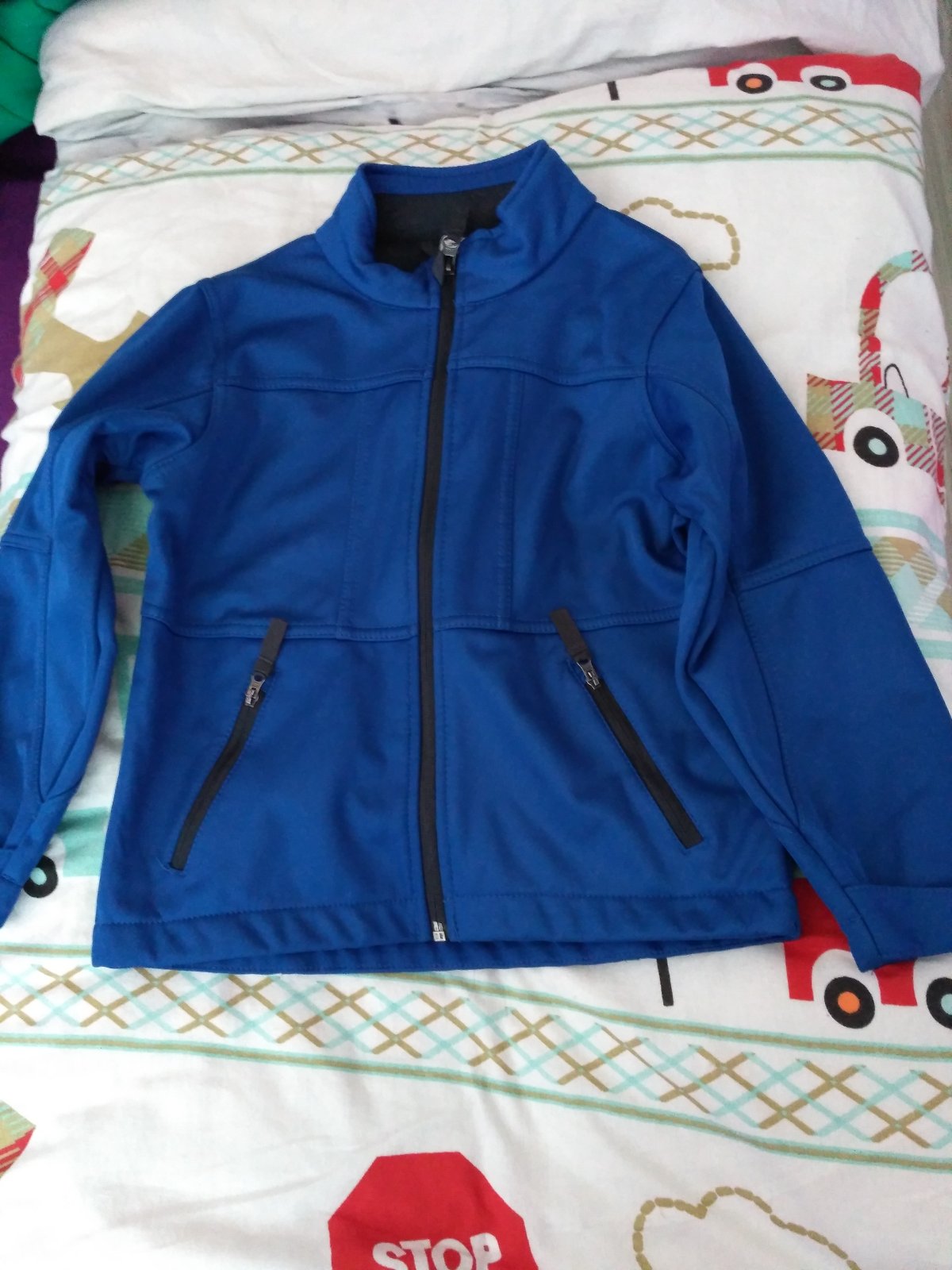 Hrubsia softshelova bunda, mala doerka pri vrecku vid foto, velkost 116-122.