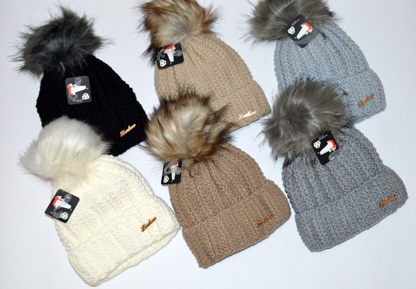 SkladomPletená čiapočka s veľmi pekným vzorom a bohatým brmbolcom.