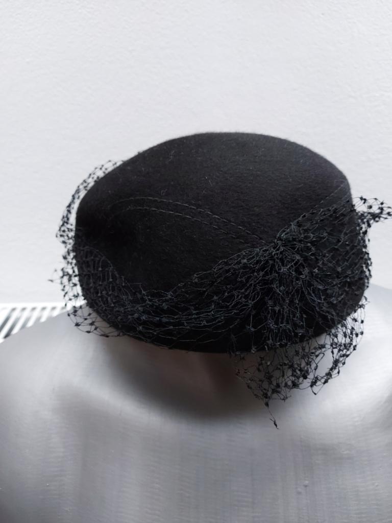 -Čierny klobučik s aplikaciou sieťky, elegancia zaručená, obvod 52cm, cena 14
