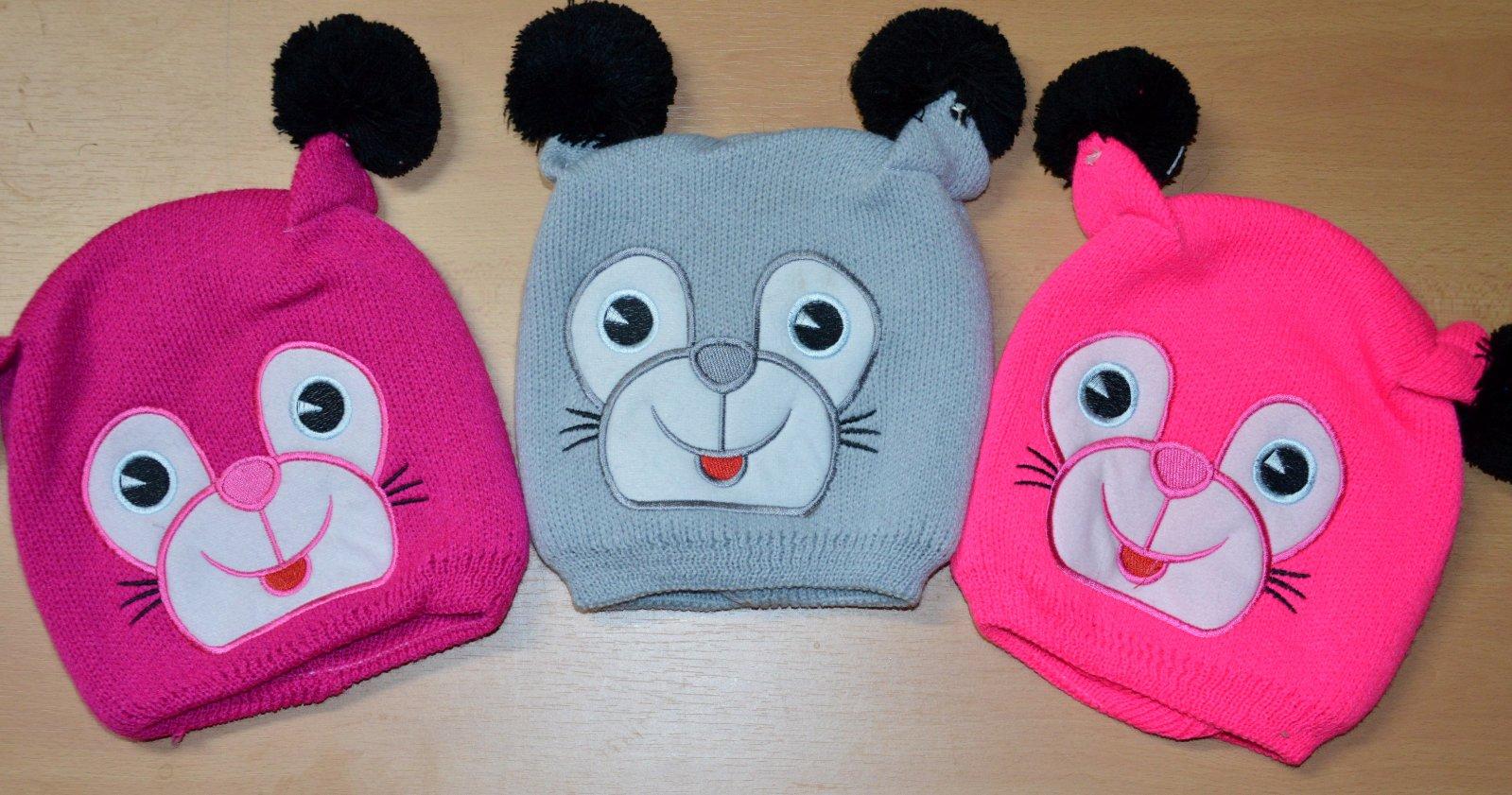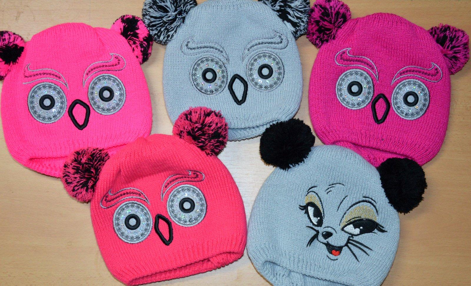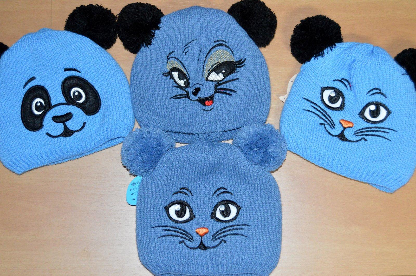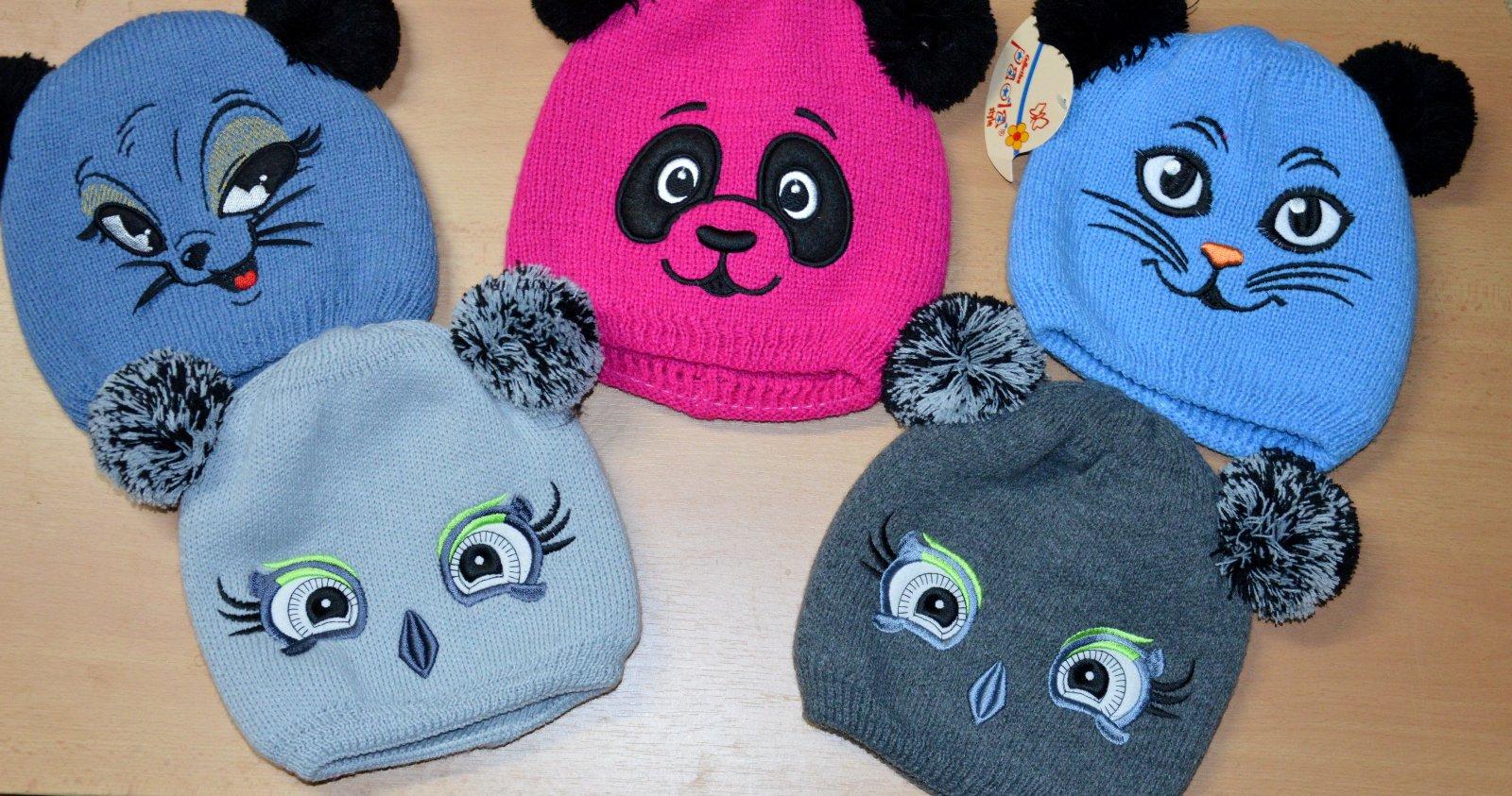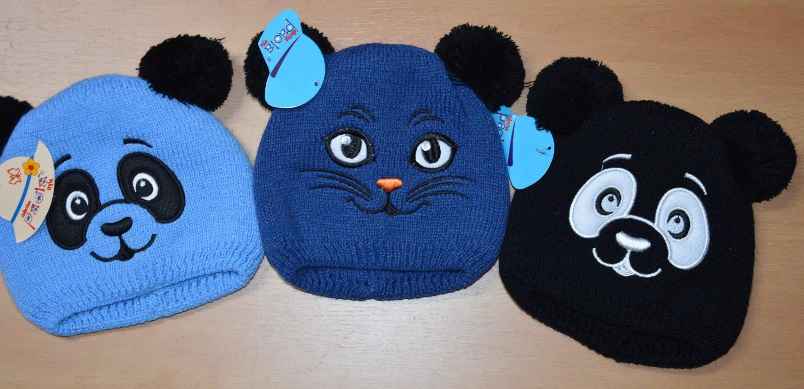 Pletená čiapočka s veľmi pekným vzorom a bohatými bambuľkami.
