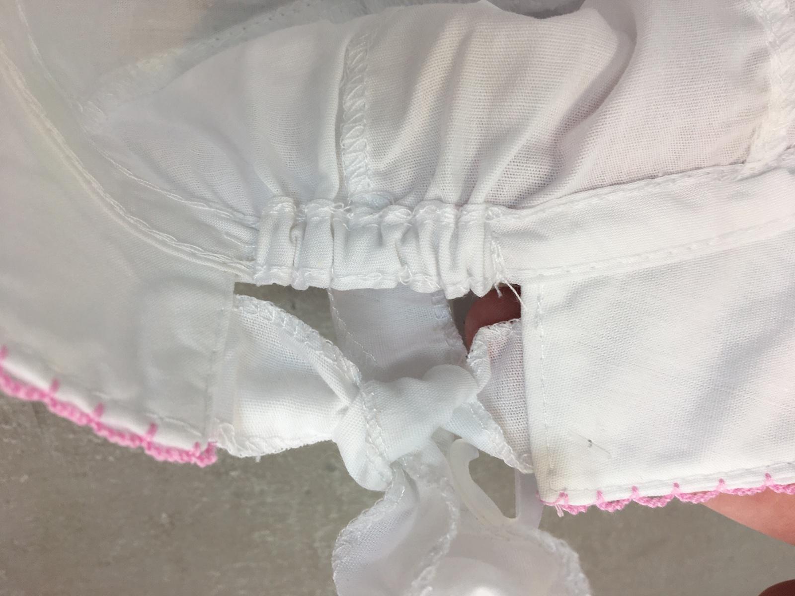 Vzadu gumička a šnúrka na mašličku