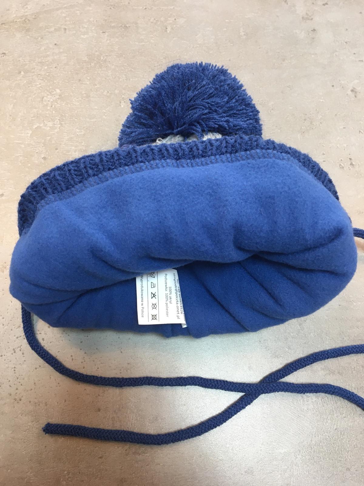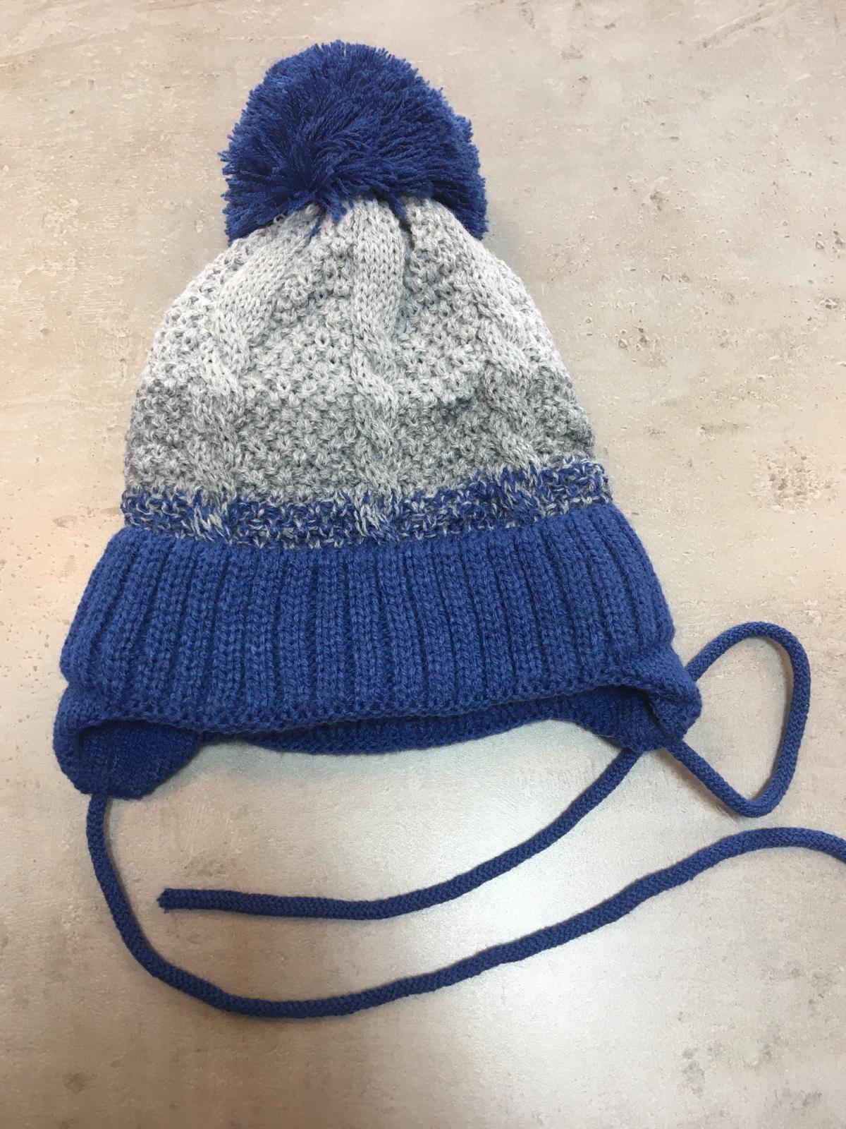 Zateplena ciapka na šnúrky pre chlapcov asi na 2roky. Obvod 38cm, výška 17cm. Cena 6€ plus posta