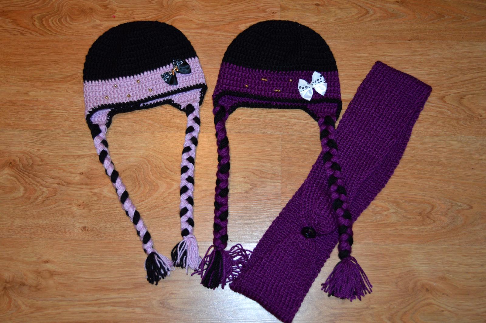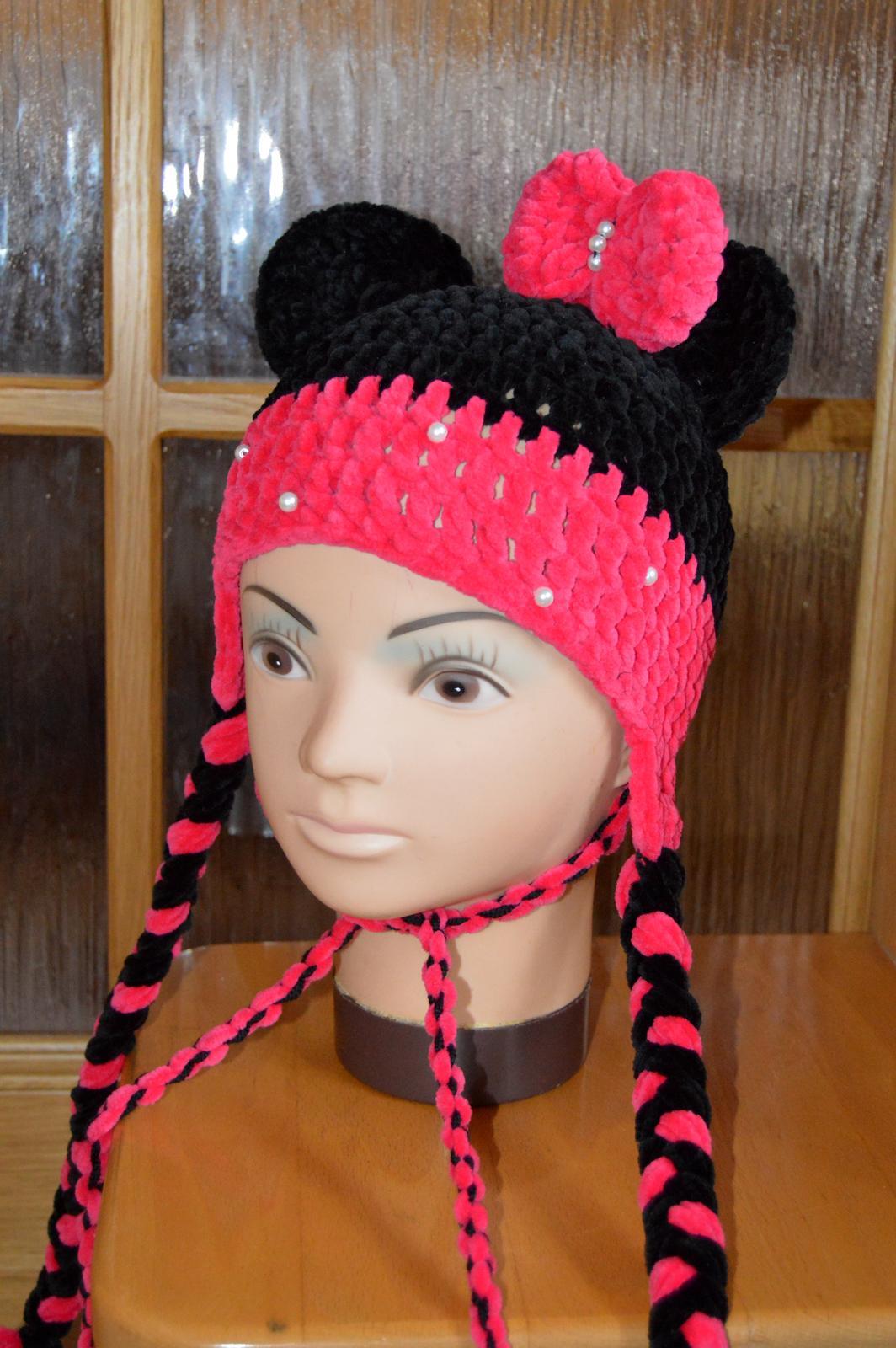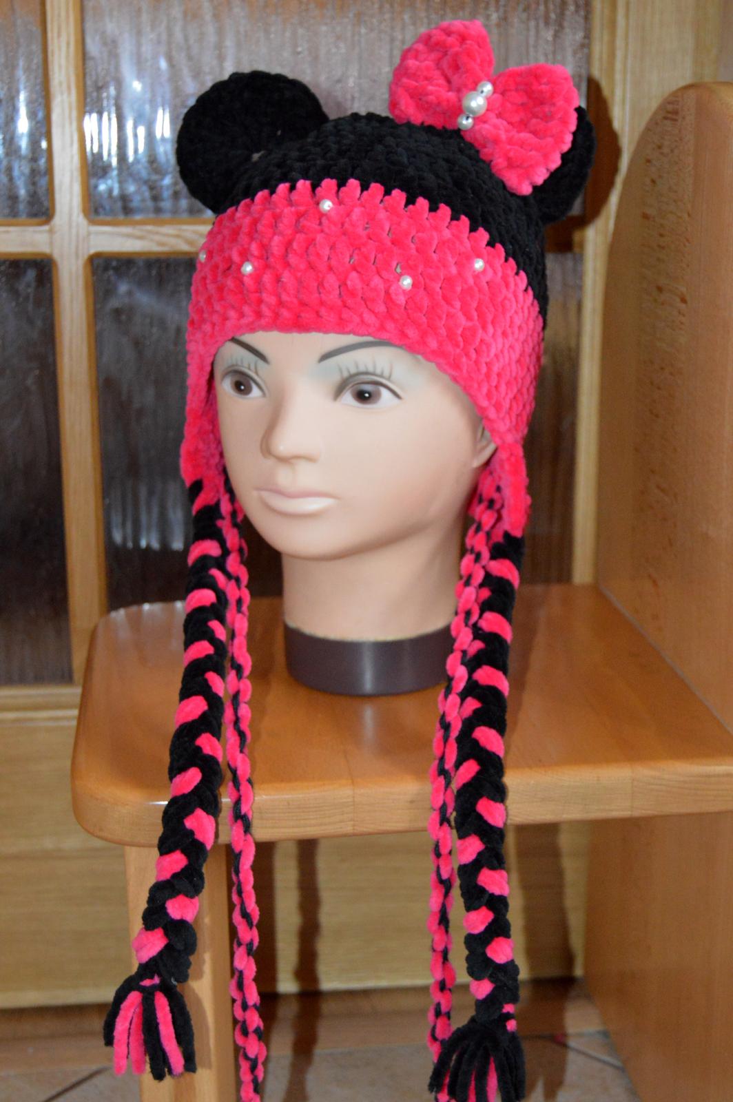 Pletená čiapočka s uškami, mašličkou a na ušká.