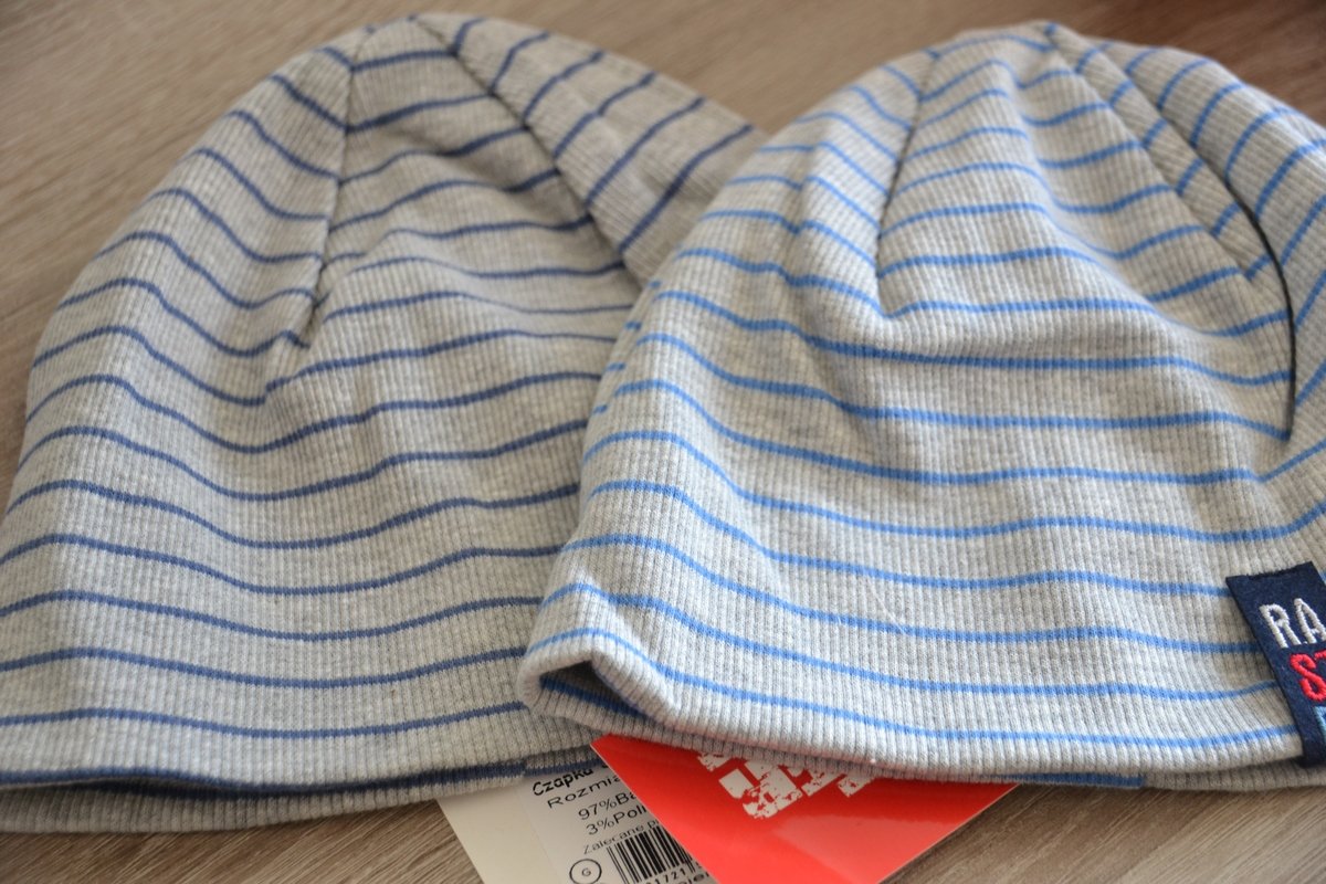 prechodná dvojvrstvová čiapka s pásikavým motívom v dvoch veľkostiach: 52-54 a 56-58.
