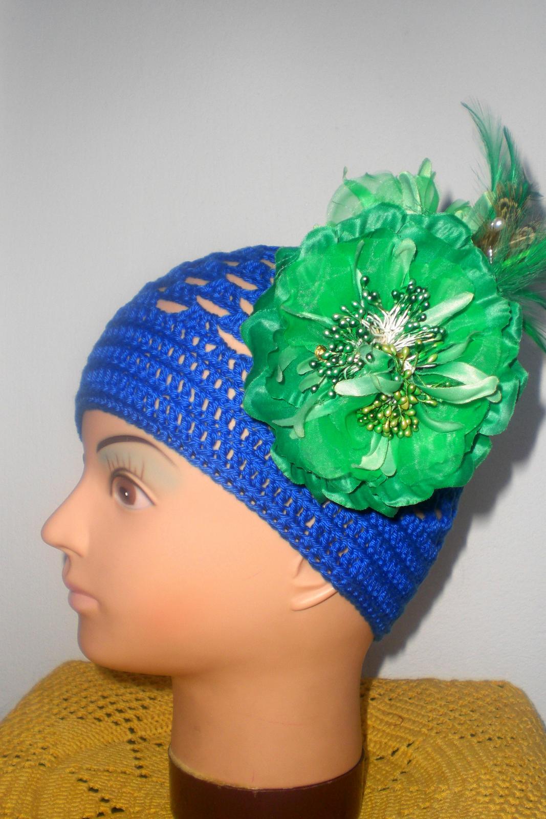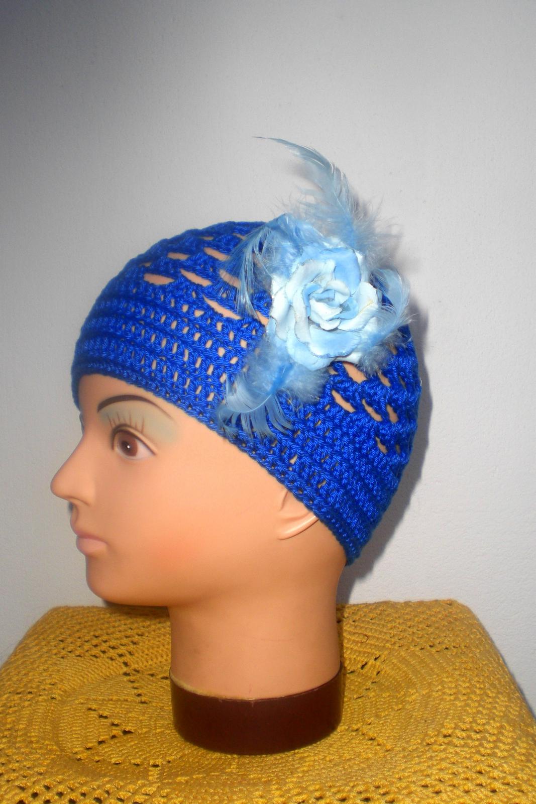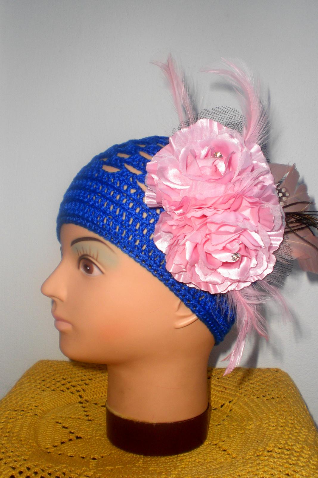 Háčkované čiapočky s veľkými odopínateľnými kvetmi.