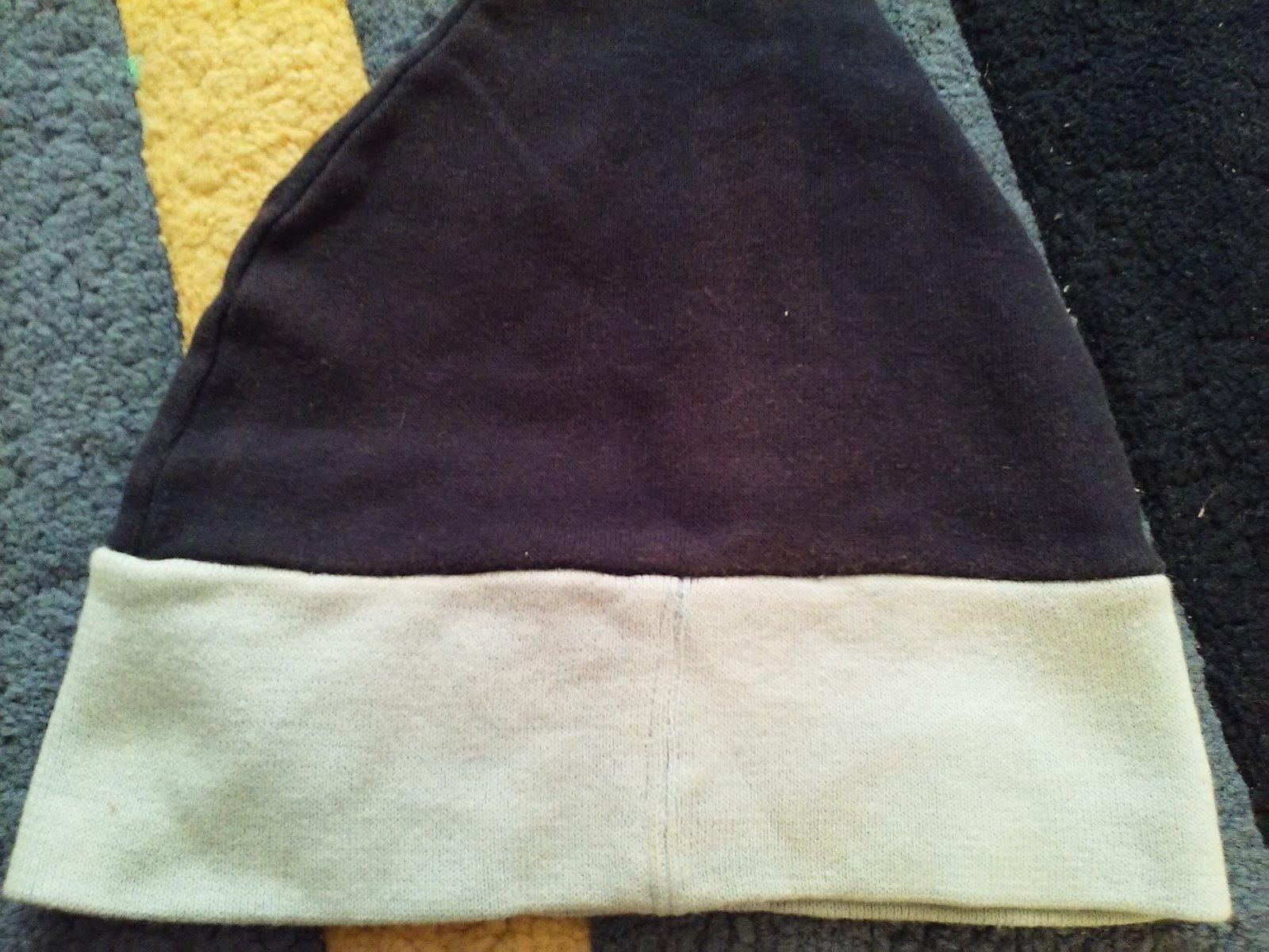 Predám nosenú čiapočku. Farba už je troška vyblednutá, aj tá svetlomodrá časť nie je už taká čistá, svetlomodrá, ale inak je nepoškodená. Patent drží dobre. Slovenská výroba. Obvod okolo hlavičky - 44cm, dĺžka čiapočky od kraja po vrch, bez tých šnúrok 25cm.