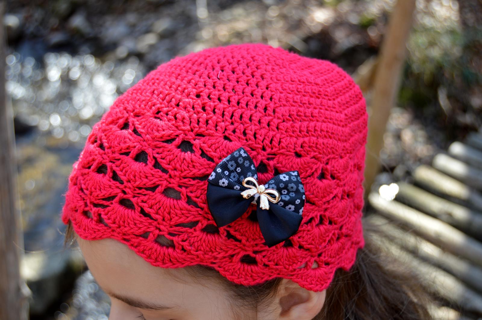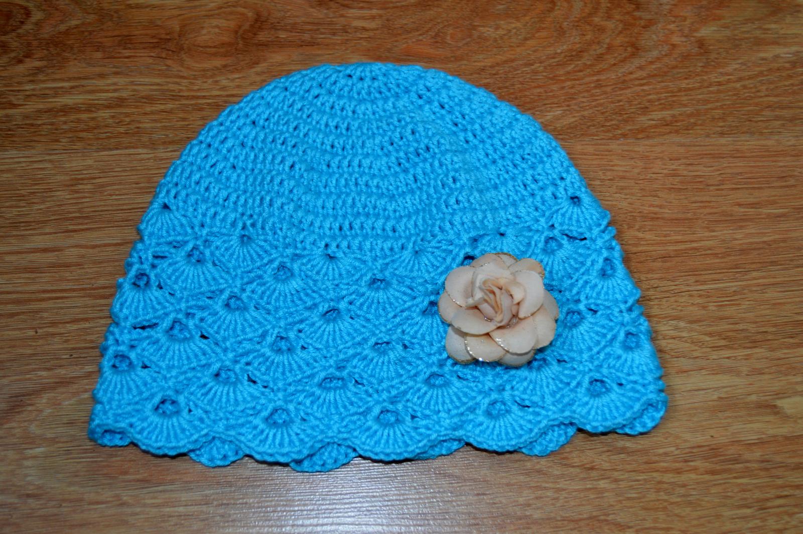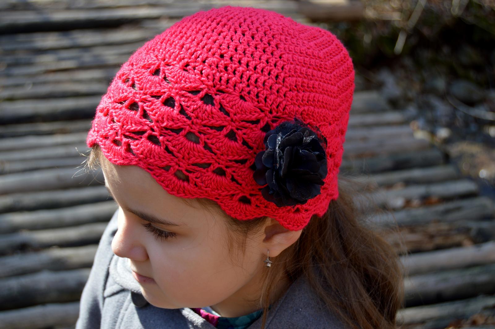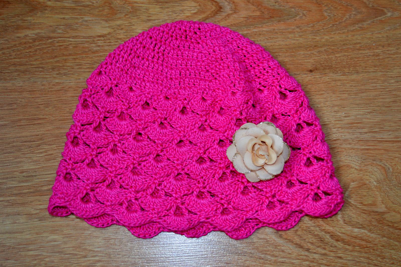 Ručne háčkovaná čiapočka s veľmi pekným vzorom a kvetom.