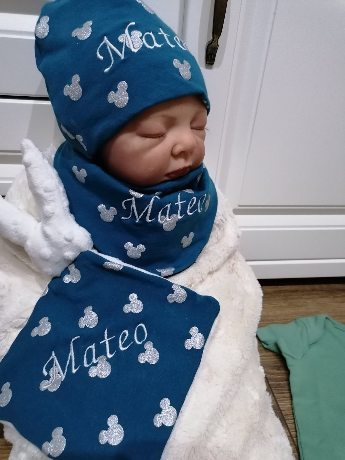 Set obsahuje mojkačika, čiapku a podbradník.