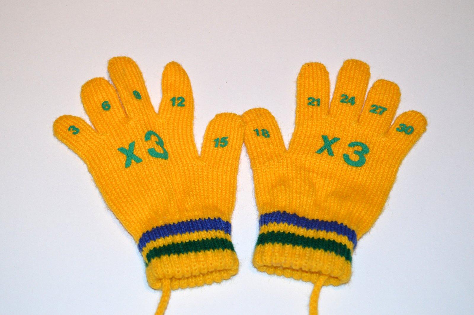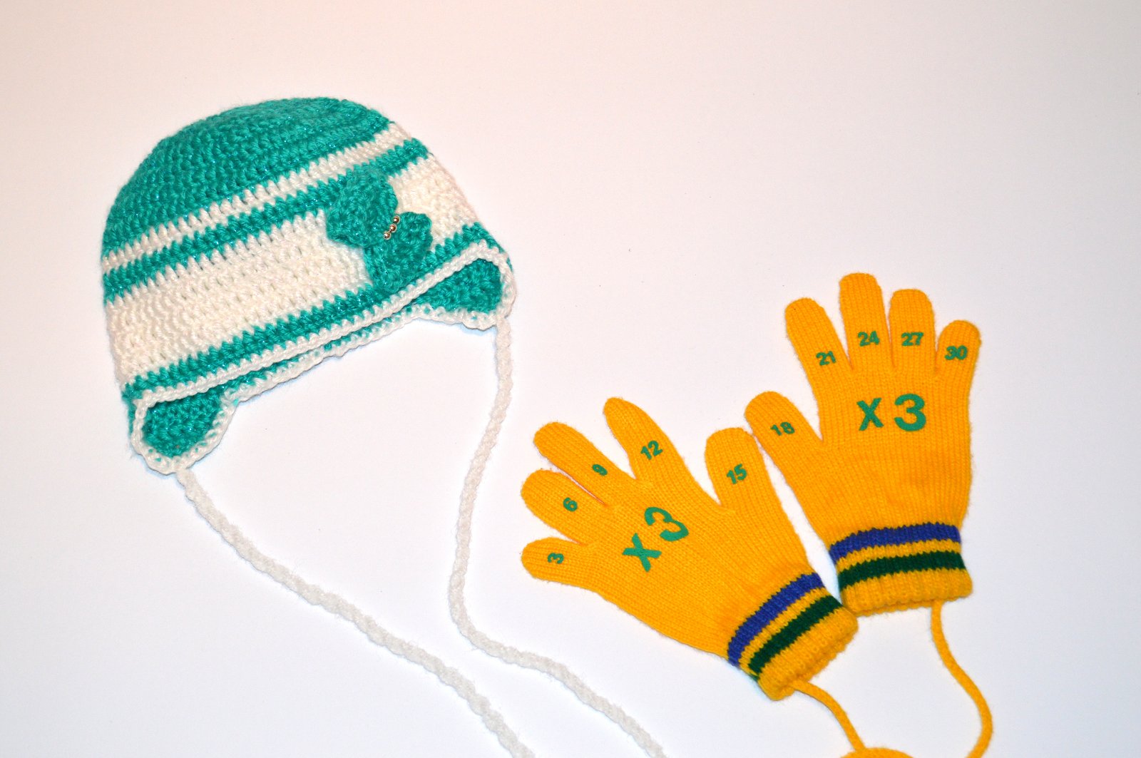 Rukavice násobilka dlžka 17 cm, šírka okolo ručky 13 cm, dlžka spojenia rukavíc šnúrkou 85 cm. Využíva sa to okolo bundičky aby sa rukavice nestratili.
