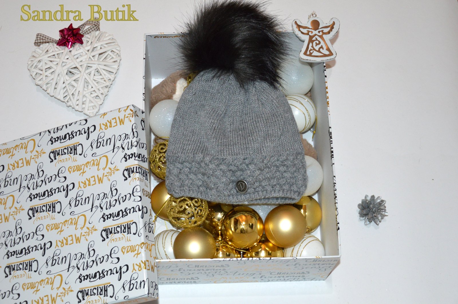 SkladomPletená čiapočka s veľmi pekným vzorom a bohatým brmbolcom.