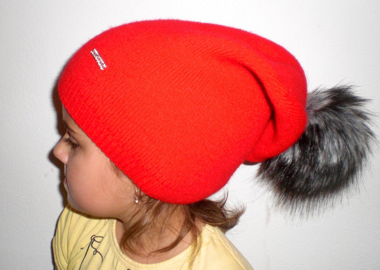 Pletená čiapočka s veľmi pekným vzorom a bohatým brmbolcom.