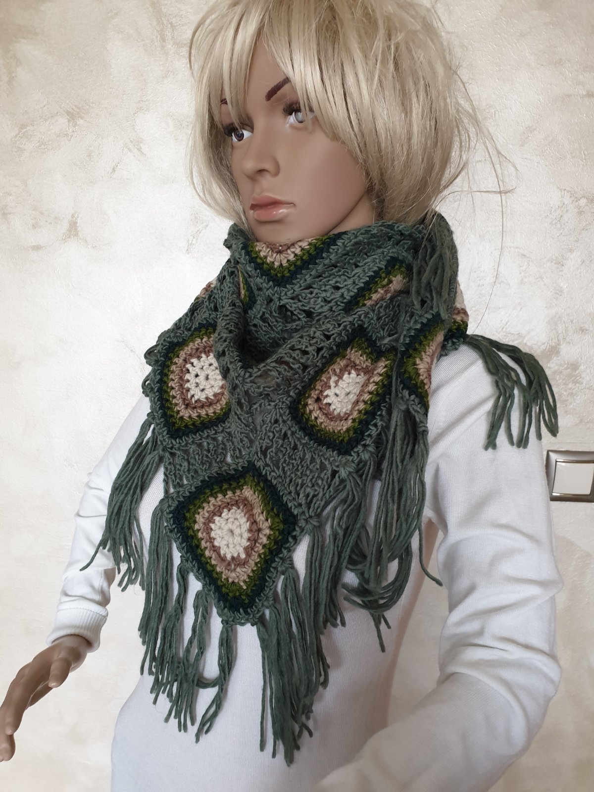 Dámsky šál. Materiál: bavlna. Príjemná na telo a stále trendy motív. Zahreje v jesennom aj v chladivom zimnom počasí. Rozmery: dlžka šálu je 90 cm, ale je to nákčník zošitý takže dvakrát sa obtáča...