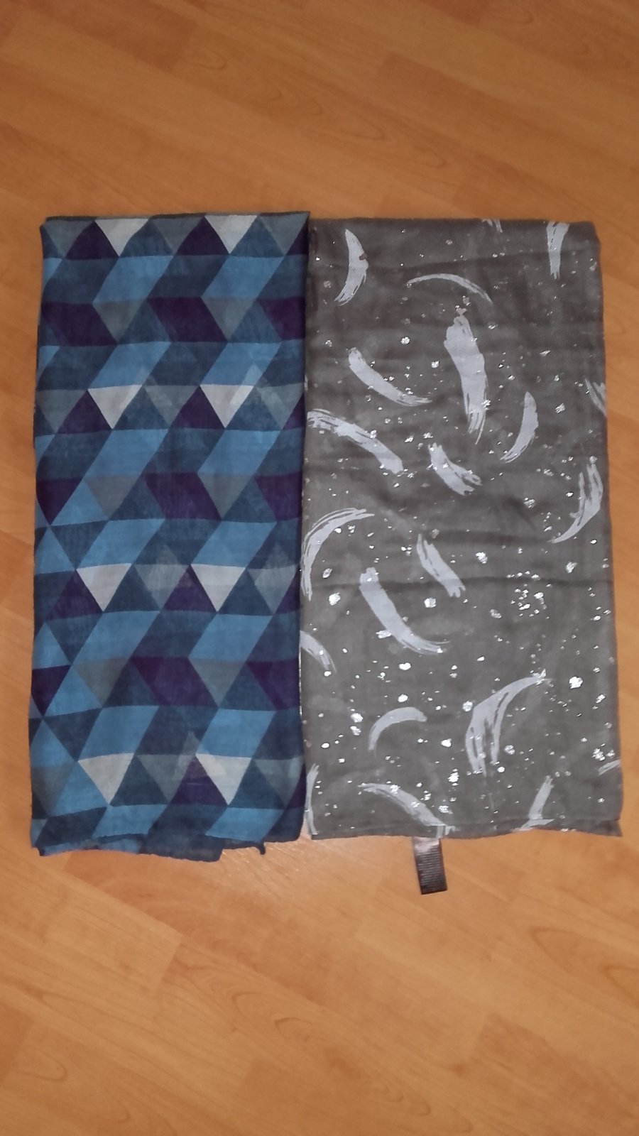 2. Vpravo sú šál, šedý TCM je 1 x nosený, druhý je viac nosený.