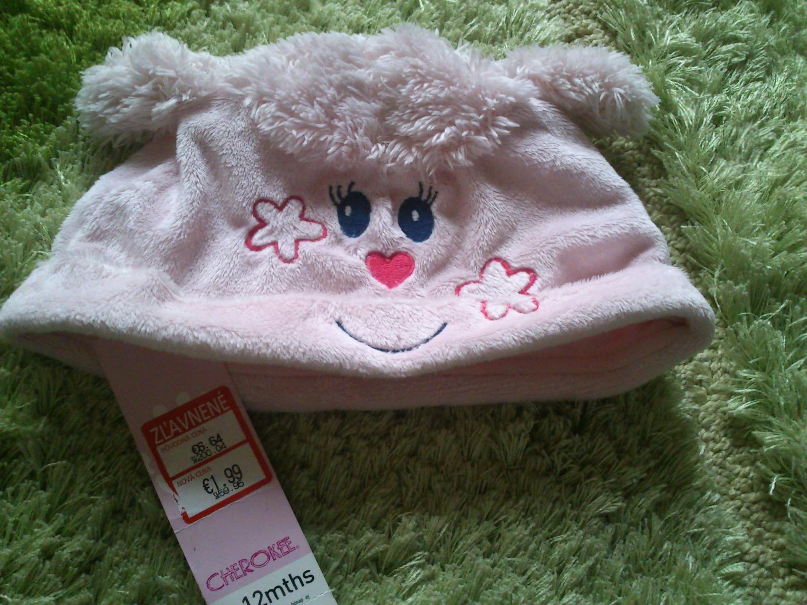 Predám čiapočku zo setu, ja som ju kúpila v zľave,neboli už pri nej rukavičky.Zabudli sme na ňu,má ešte visačku. Veľkosť je uvedená na 6-12 mes. Čo zodpovedá asi veľ. 68-80. Obvod čiapočky som namerala asi 48cm. Je z takého maznavého materiálu, vnútro podšité tričkovinou. K cene si treba pripočítať poštovné.