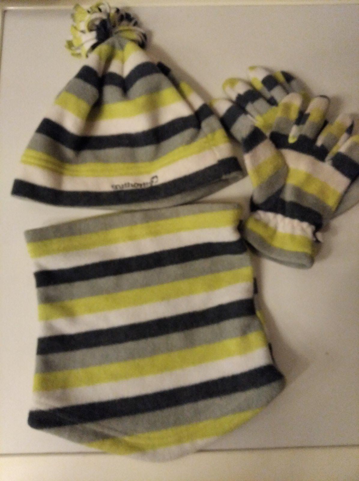 pekny noseny stav, material flees, su bez vaznych poskodeni, ponukam ciapku a tunel, ak bude mat niekto zaujem pribalim aj rukavice, ciapka sirka 25cmx2, vyska 20cm tunel 25cm s cipom, vel.116/122