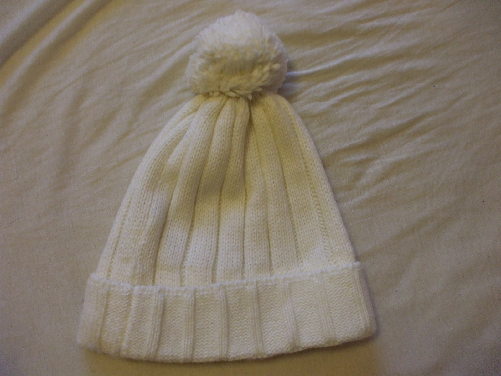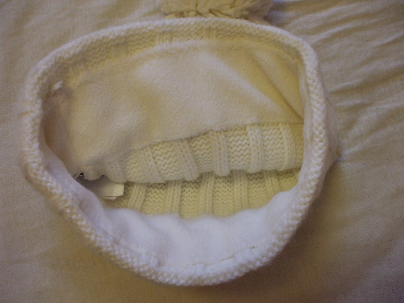Krásna snehobiela čiapka. Bola nosená asi 5x, lebo som kúpila malú a hneď začala tlačiť. Vyteplená cez čelo a ušká, úplne super.