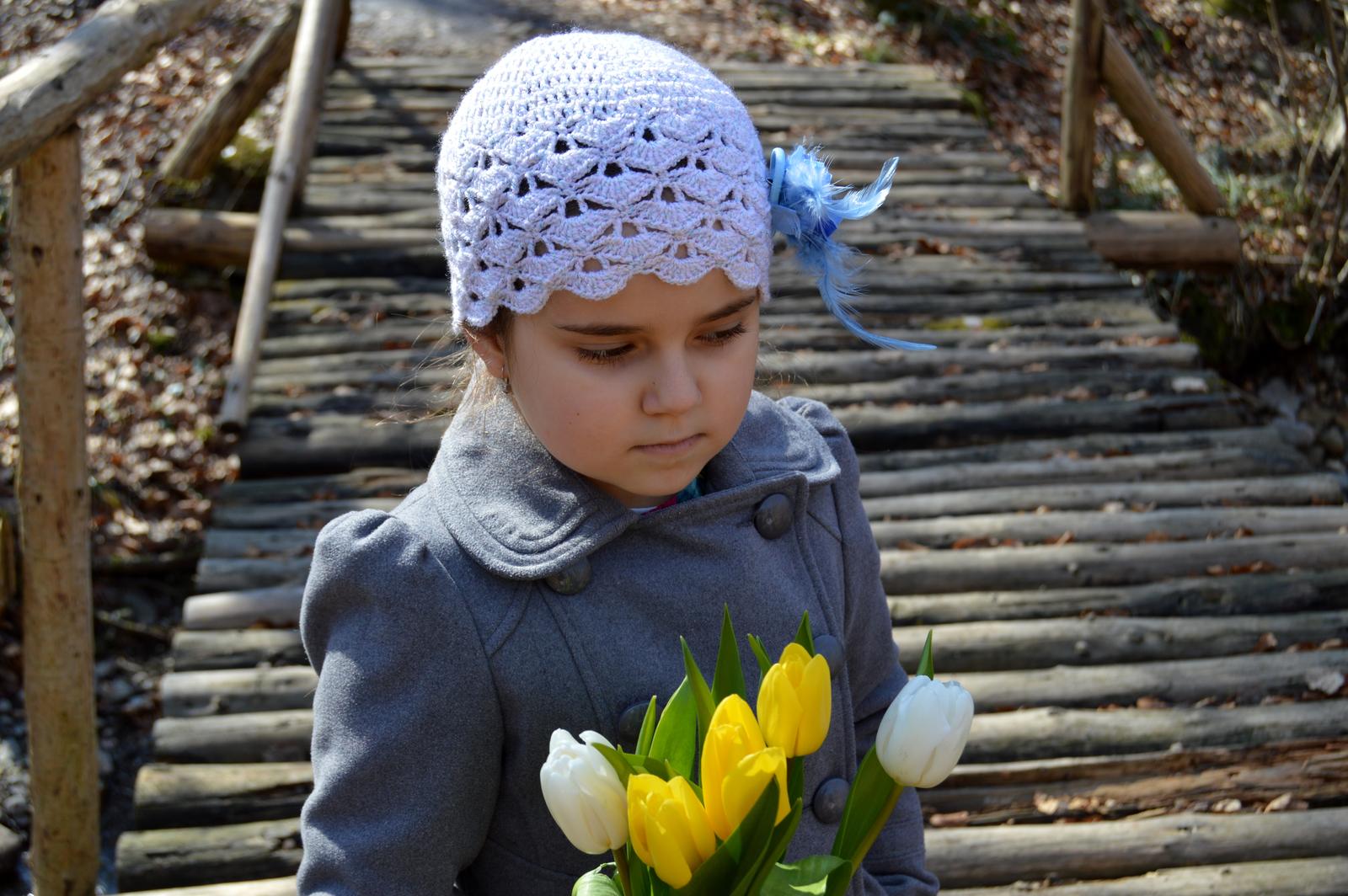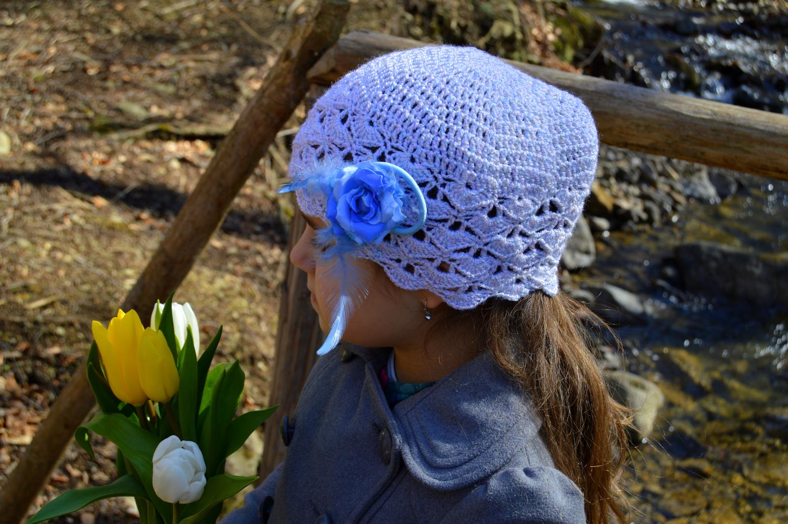 Ručne háčkovaná čiapočka s veľmi pekným vzorom a kvetom.