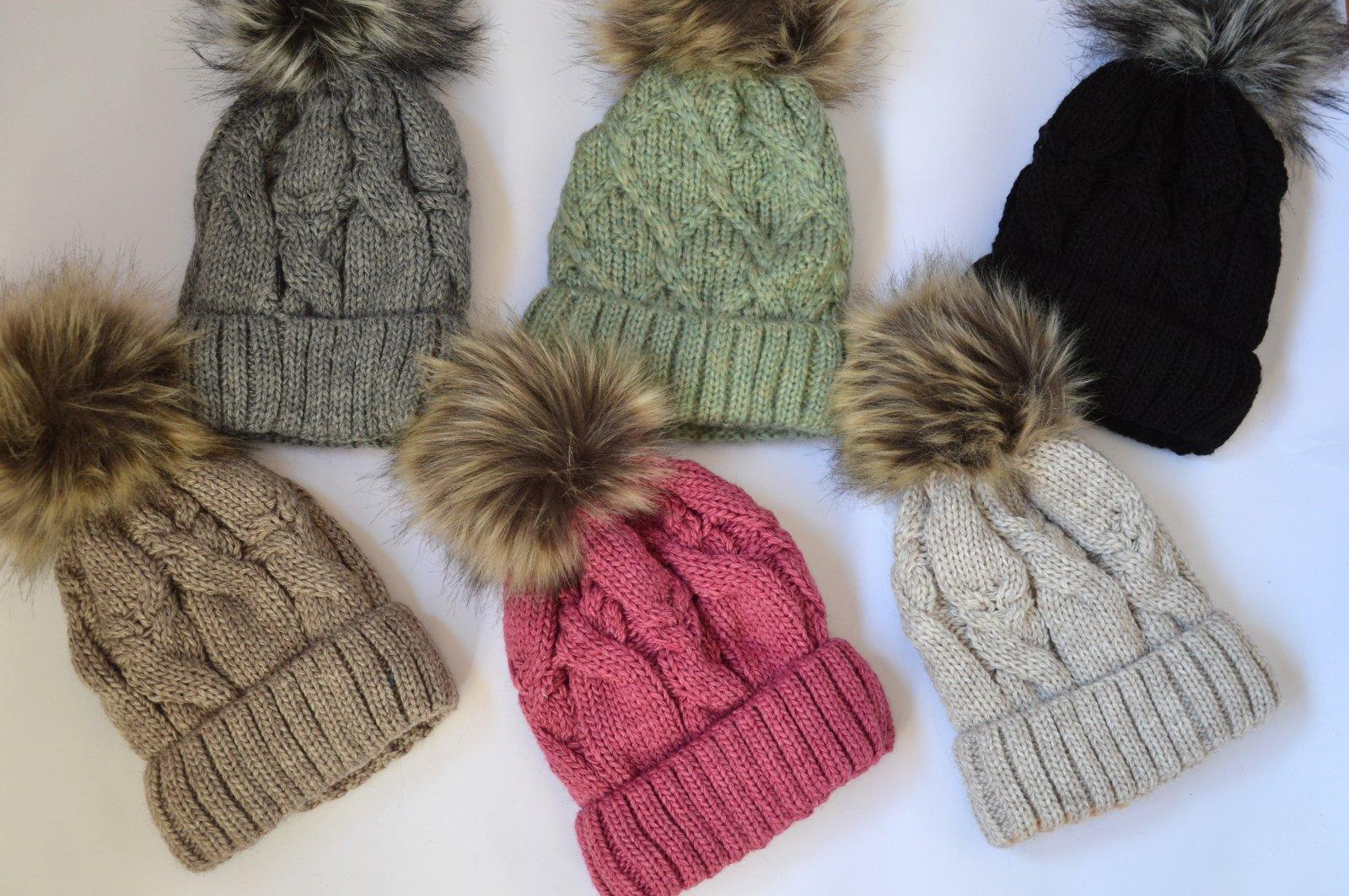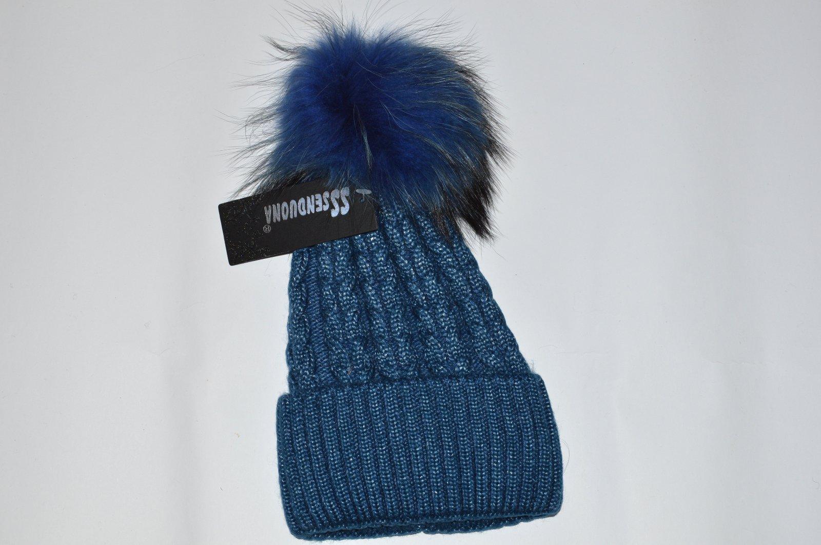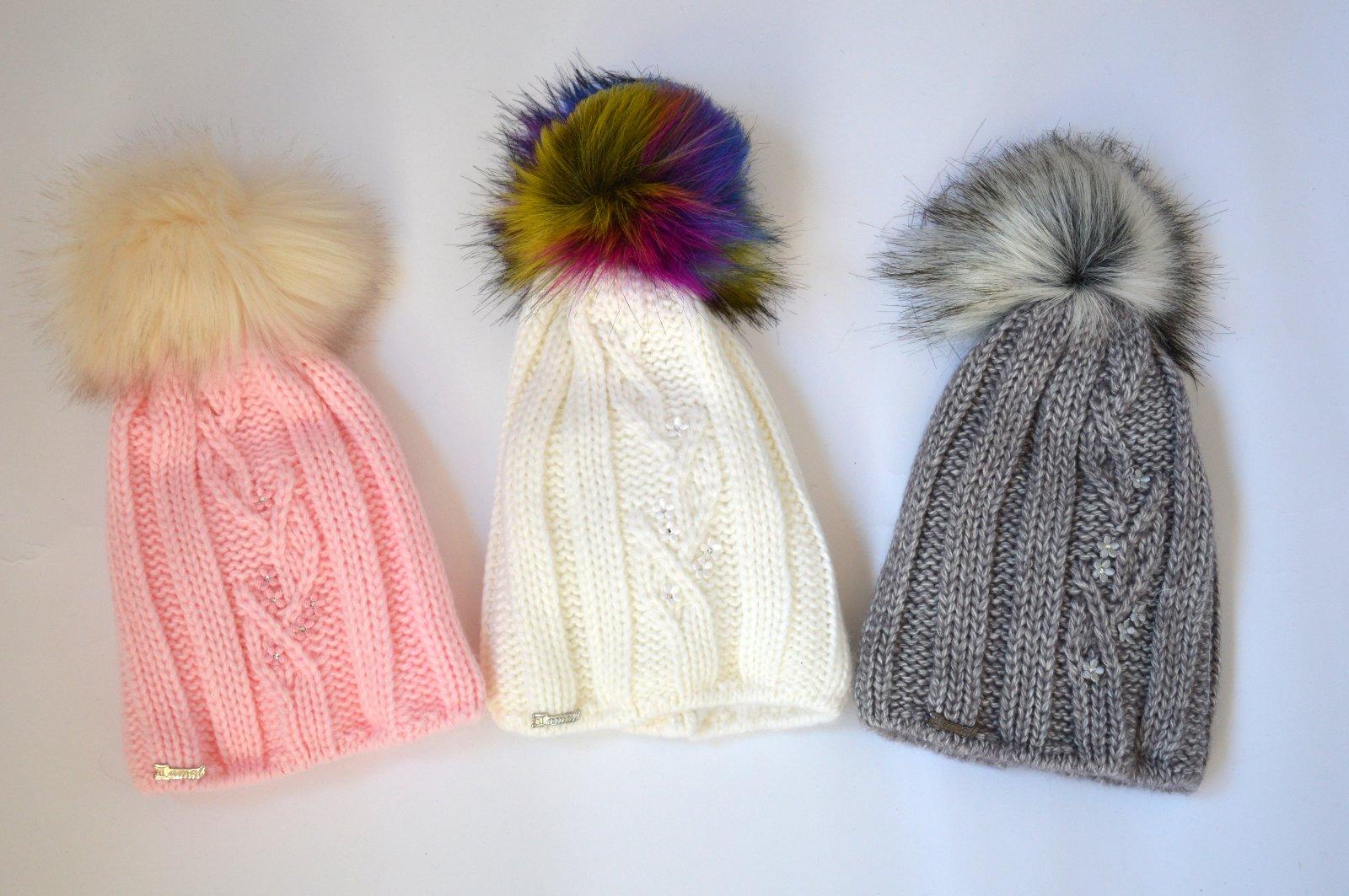 SkladomPletená čiapočka s veľmi pekným vzorom a bohatým brmbolcom.
