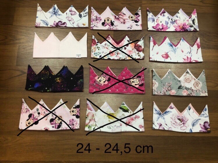 SkladomNové handmade obojstranné aj jednostranné korunky. Sú elastické, cena 4,50 € za kus. Rozmery na fotkách.