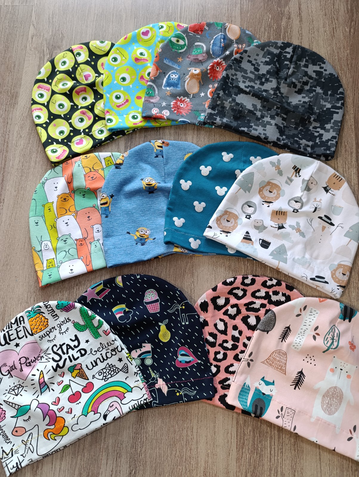 Skladom❗ DOPREDAJ ❗ jednovrstvová elastická čiapka jednofarebná vzorovana uchmati si tú svoju , zostáva pár ks