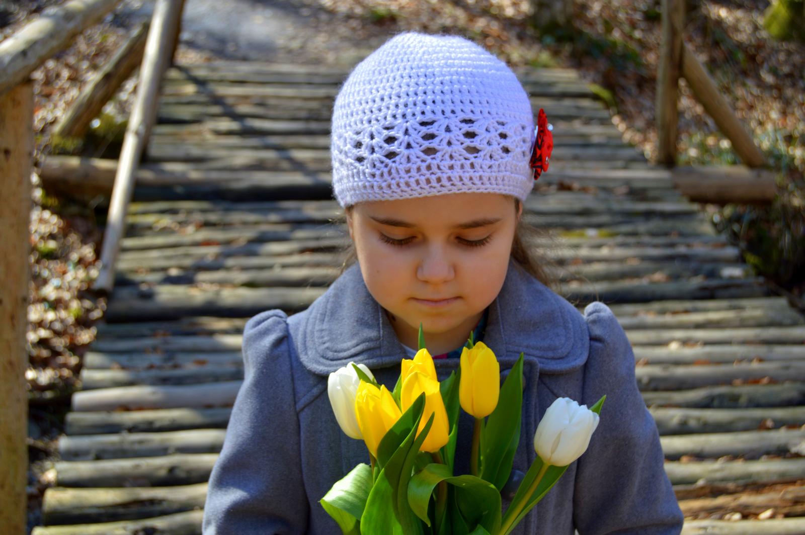 Háčkovaná čiapočka s kvetom