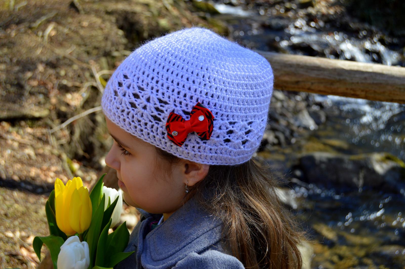 Ručne háčkovaná čiapočka s veľmi pekným vzorom a kvetom.